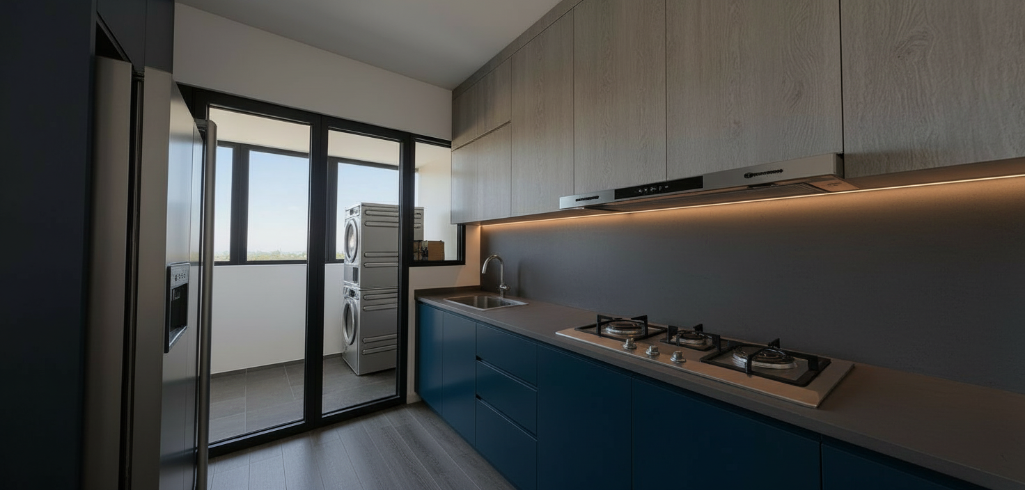 maintain everything in picture but change backsplash and counter top to dark grey notredam stone finish