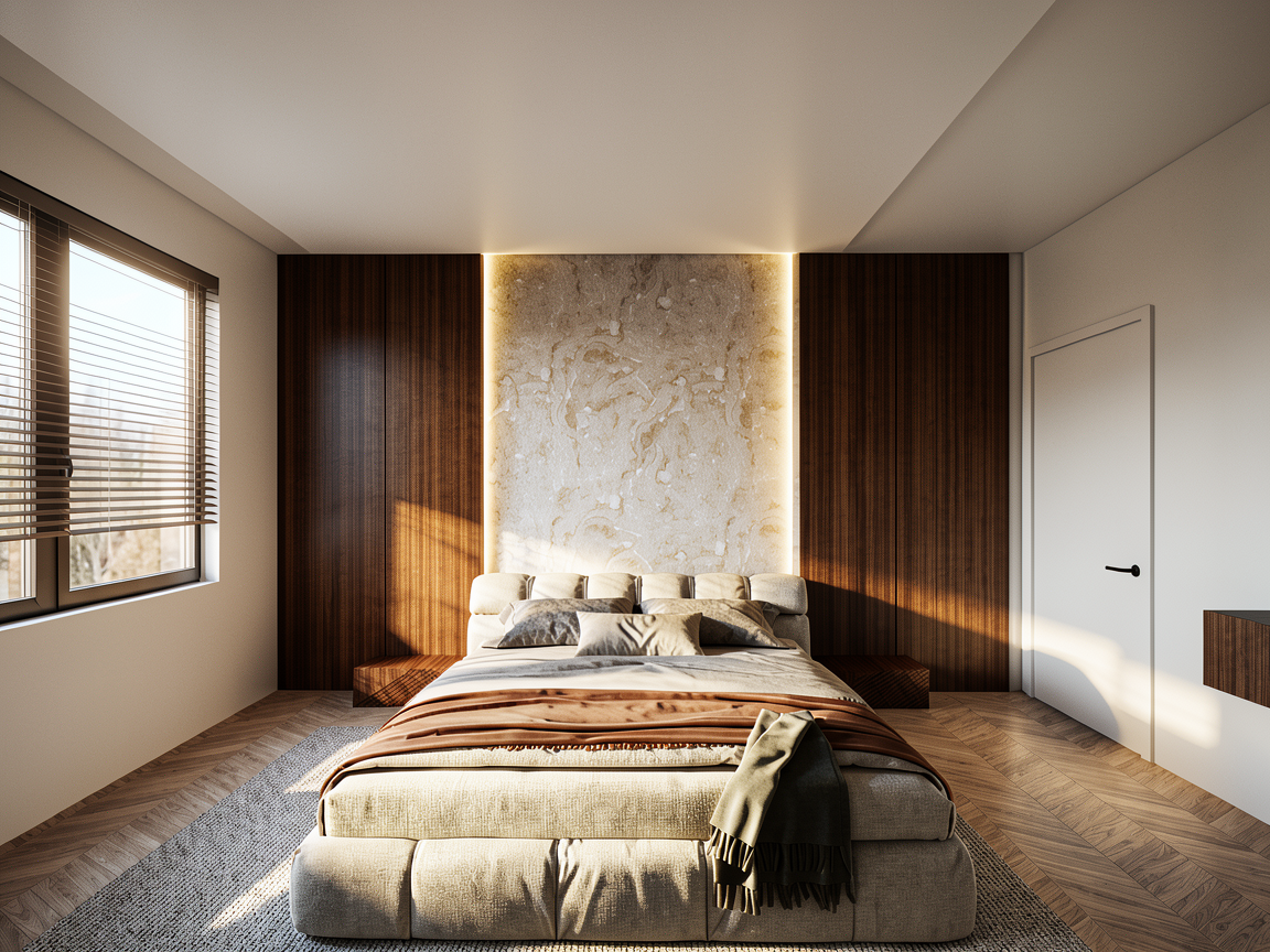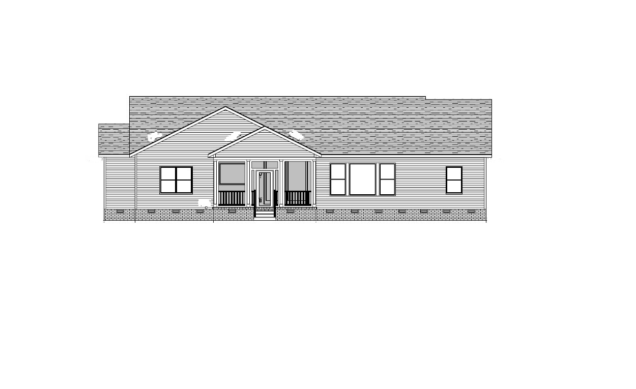 make as photorealistic as possible while keeping textures the same as shown grassy backyard in a lightly wooded suburb in south carolina nice lighting remove any text use the following finishes 688a8f vinyl siding evelyn bay brick foundation with gray mortar silver birch certainteed dimensional shingles screened porch to have white posts and rails with screen door as shown