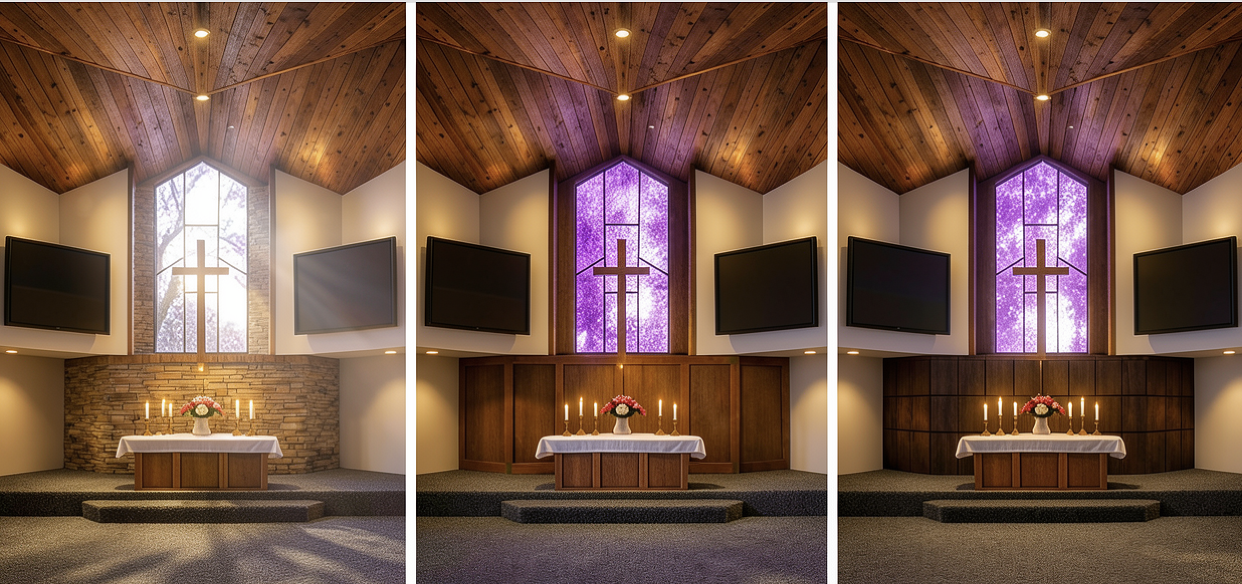 a chruch renovation we need to make a change the window to be brought flish with the walls and ceiling the rest of teh desig nintent to remin the excat same