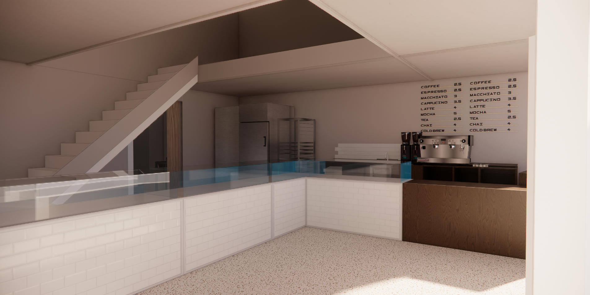 keep spatial arranagement a modern chocalatier with coffee and pastries people browsing chcolates and a feature croissant chandelier