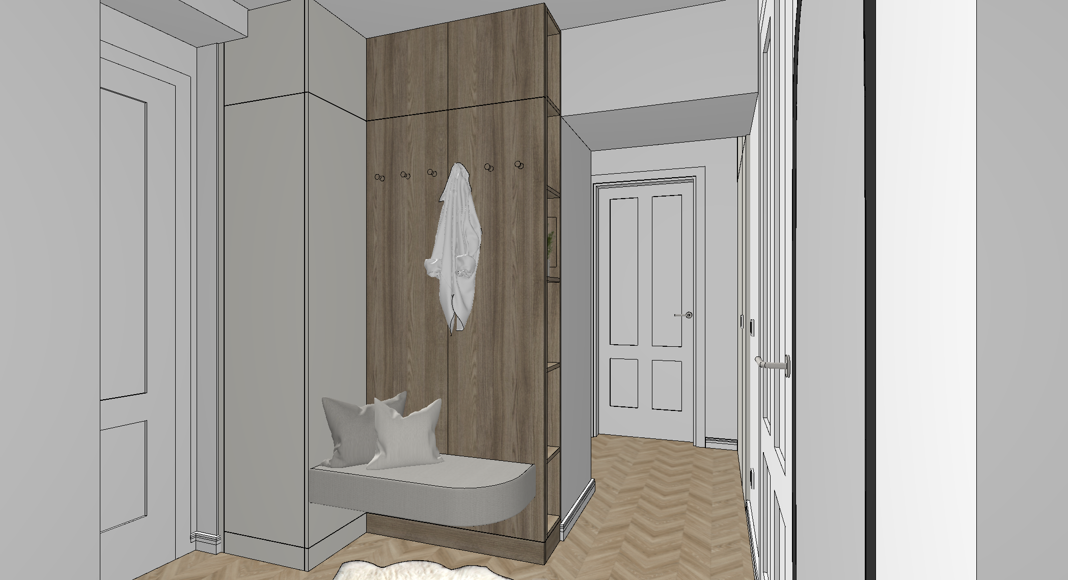 altbauwohnung in salzburg warme lichtstimmung ein wenig sonnenlicht von au en am fussboden einfallend fussboden und holz in heller eiche w nde und innent ren in wei schrank in hellem beige sitzbank in beigen boucle damenschuhe unter der sitzbank