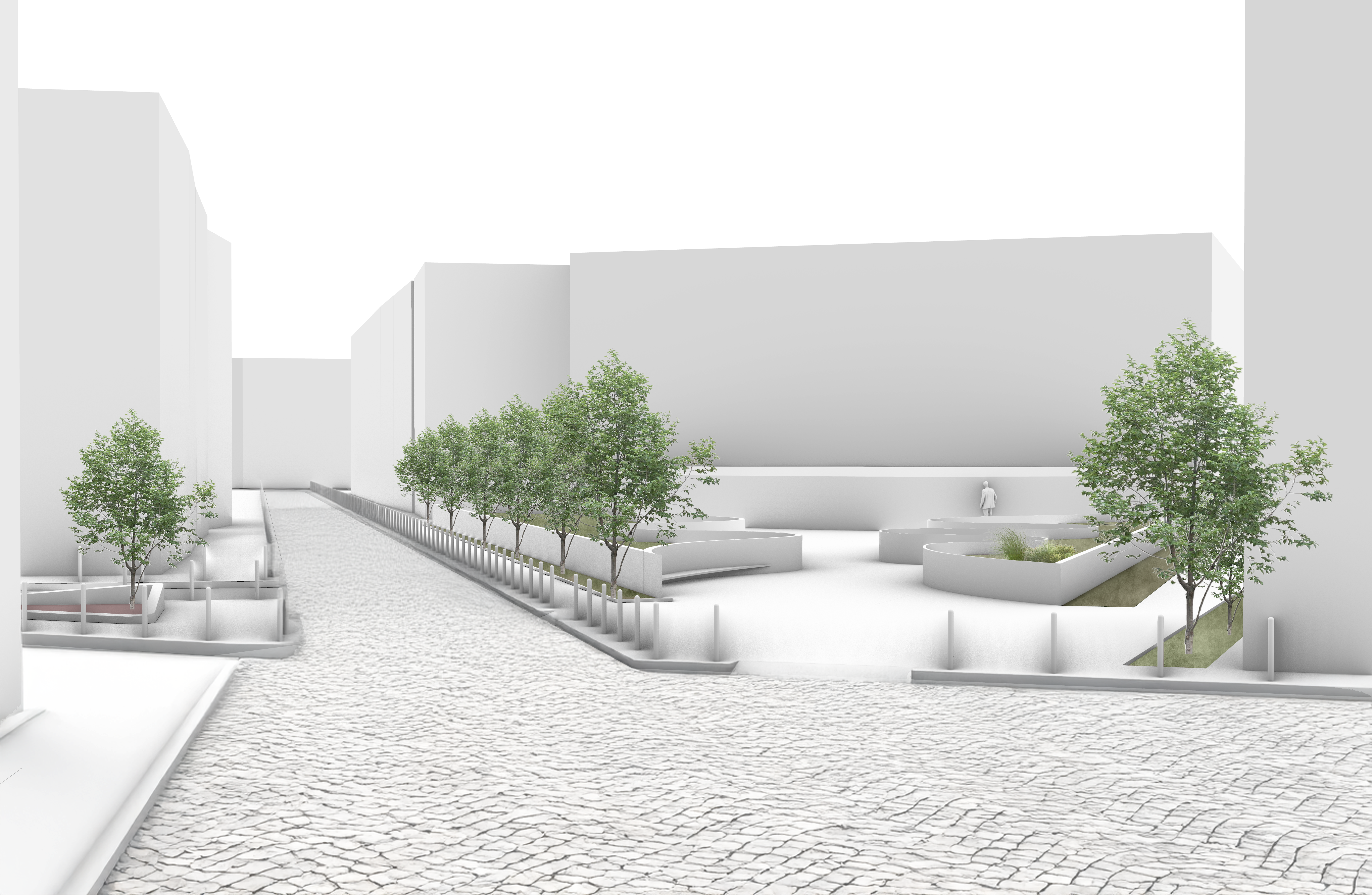 a green area make it realictic pavament concrete furniture different kinds of trees this ir greece