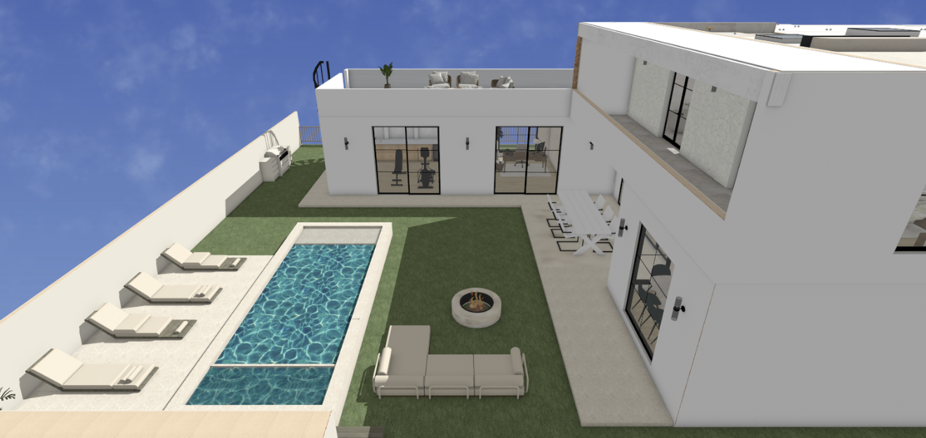 create a super realistic ultra high definition hd interior rendering based exactly on the provided image render a photorealistic 3d perspective of this house in a truckee ca reference the current material style just enhance them detailed textures clear sky with light atmospheric depth render in hyper realistic architectural visualization quality 8k resolution the house located in la change and bring the house in a neighborhood