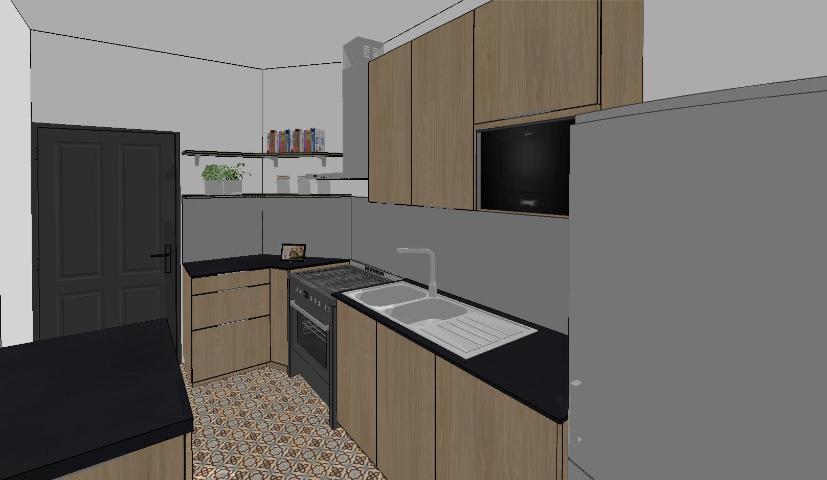 porte du fond avec panneaux du haut vitr s cr dence en inox fa ades cuisine en bois sans cadre