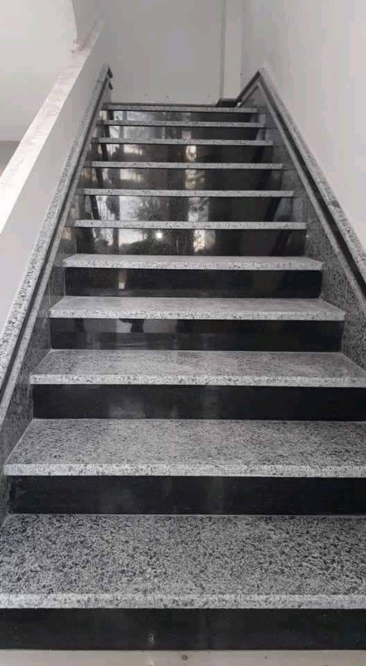 change the tread of this stairs to to black granite the riser to metal plain in black color