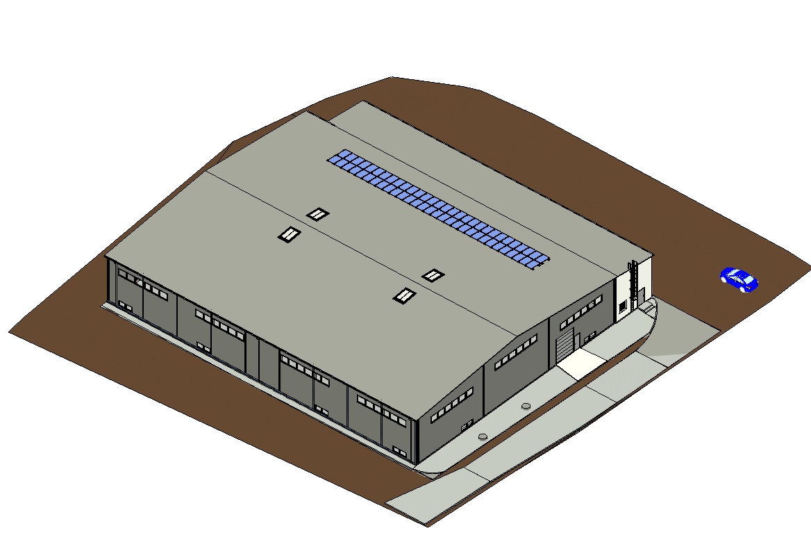 house integrated naturally into the sloped terrain surround the property with an industrial park place the sun behind the trees so warm golden sunlight beams through the branches casting soft rays and subtle dappled highlights across the patio siding and grass create ultra realistic lighting crisp shadows detailed textures in the wood siding and glass reflections and a vibrant clear sky with light atmospheric depth render in hyper realistic architectural visualization quality 8k resolution