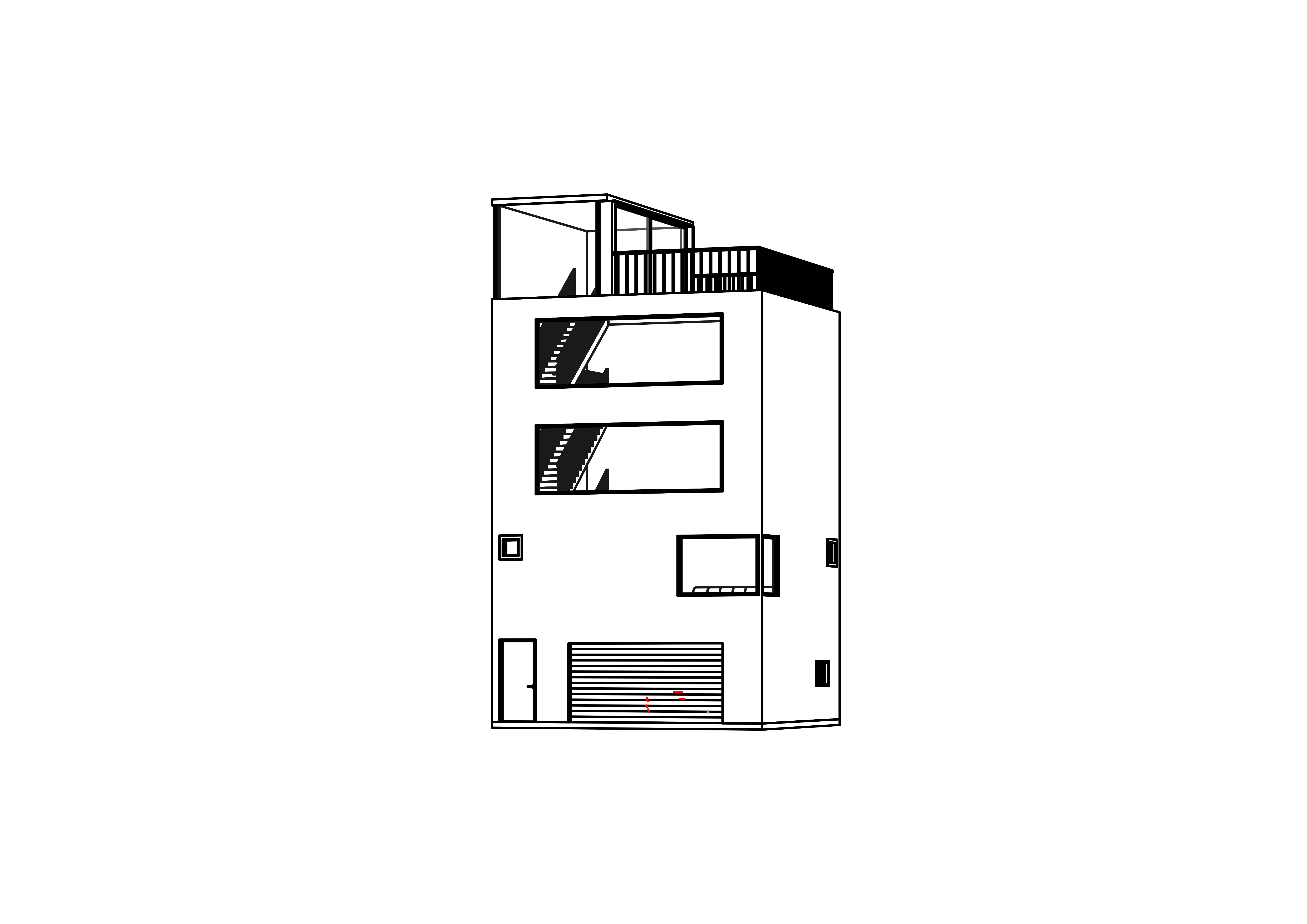 modernist exterior shot sketch to render no extensions set in urban city on a lane way corner no garden architecture