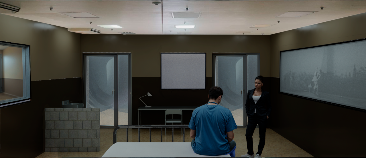 put all the doors and windows with white frosted glass without view to outside just white color only