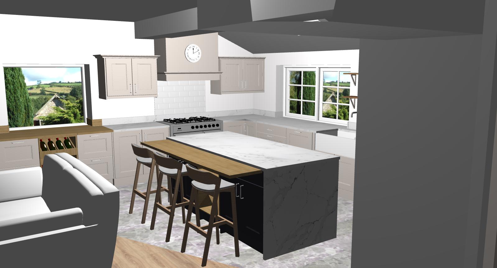 natural lighting under cabinet lights under wall units dress the shelves over the sink vase of flowers on the island cushions on the sofa