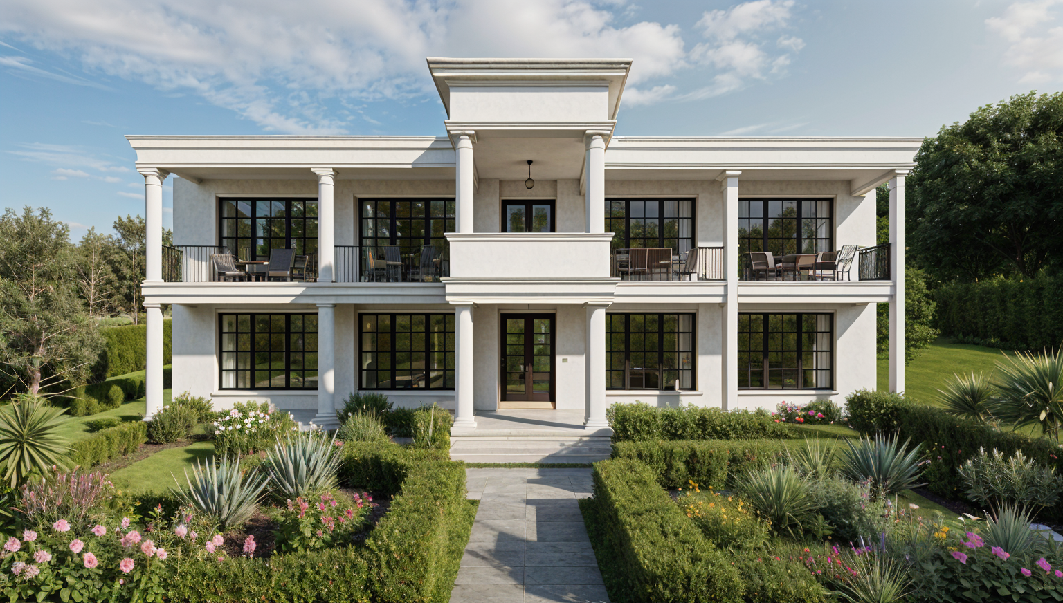 drive through driveway luxury finish low formal garden