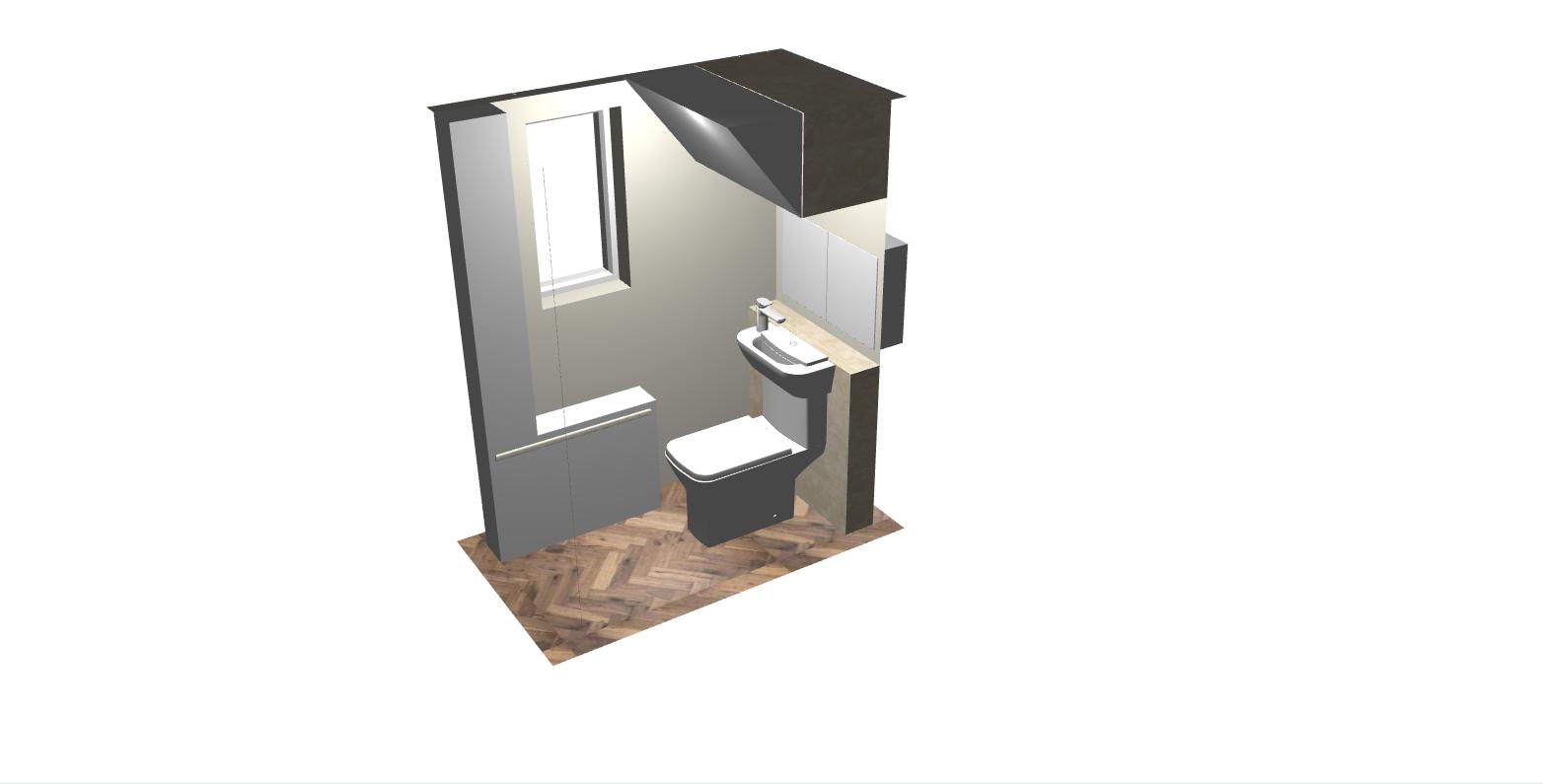 render the bathroom only and replace the toilet with a toilet with built in basin on top of the cystern