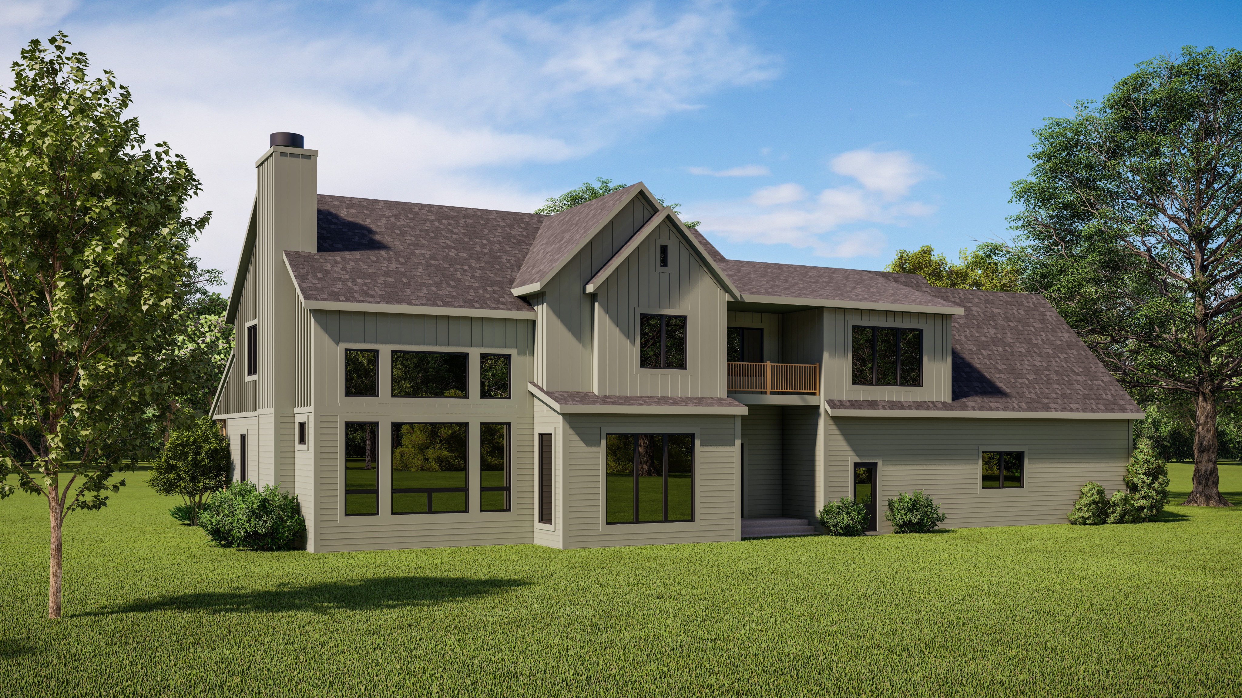 add landscaping and make photorealistic add patio midway from right side to the left side of the house patio is 12 deep