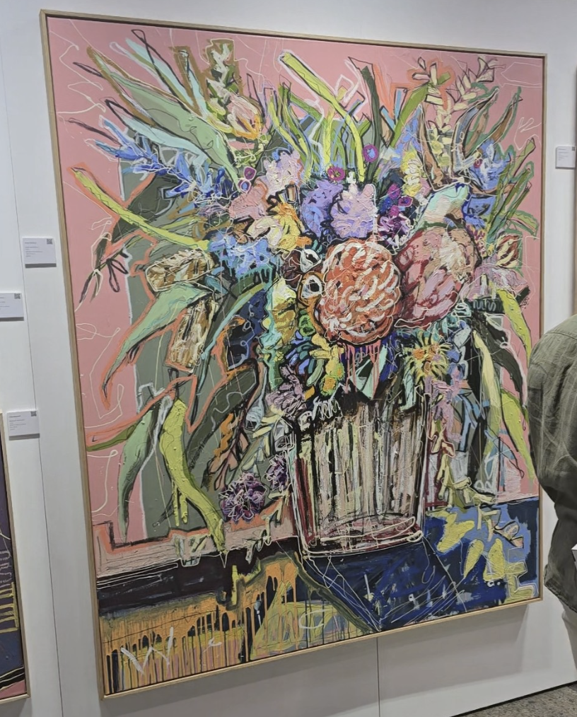 create an abstract foral arrangement with strawberries