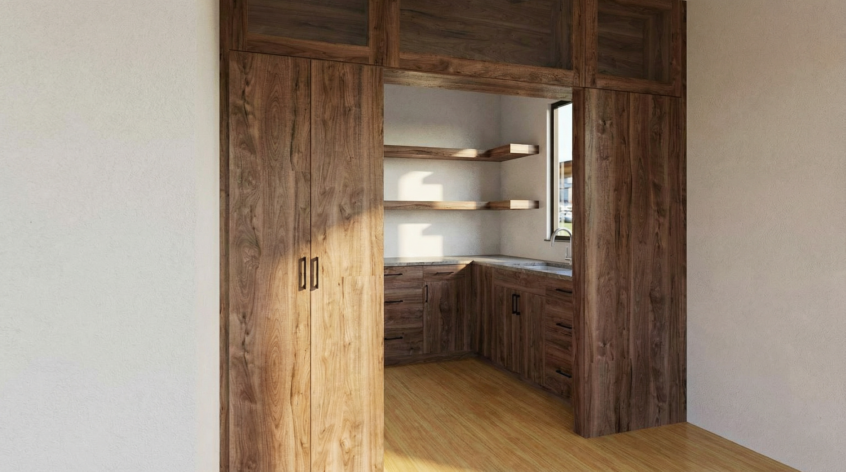 architectural realistic grayscale rendering of a furnished interior surrounded by mountain pines and mist below outside the windows rendered with crisp building geometry and realistic materials soft ambient lighting overcast sky moody grayscale rendering high detail model aesthetic conceptual design architecture studio presentation style