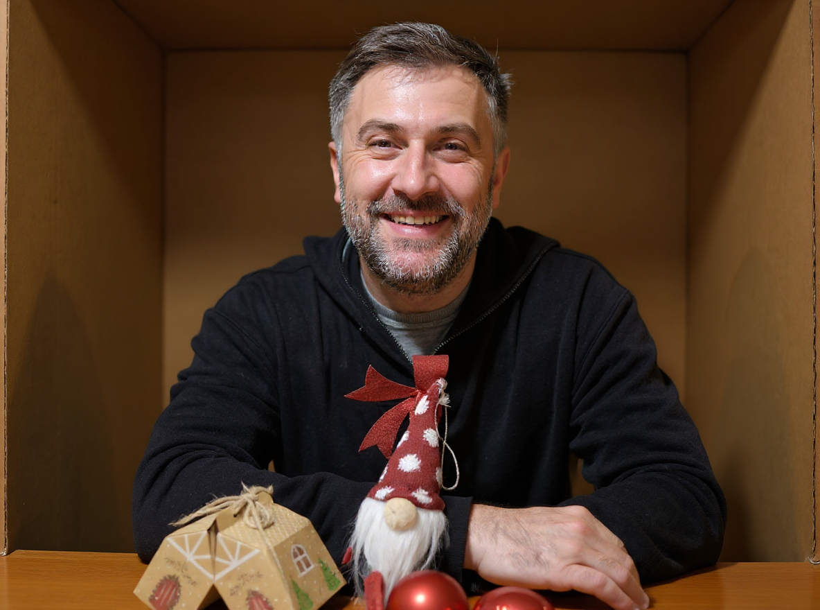keep the person exactly the same don t retouch it but make it like he s posing in the box