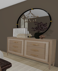place only the items in the moodboard in a realistic room setting with the provided wall paint color paint the trim the same color as the walls image should be high quality photorealistic for an interior design portfolio do not place any other objects in this picture no window in the picture the natural light should come from off the page from a window that is not seen in this angle