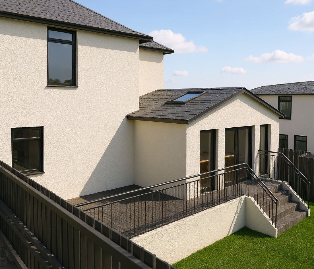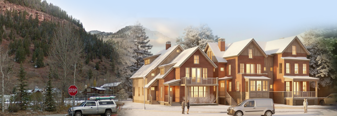 lets do a nice render of this scene keep the buildings the same and add snow on the mountain