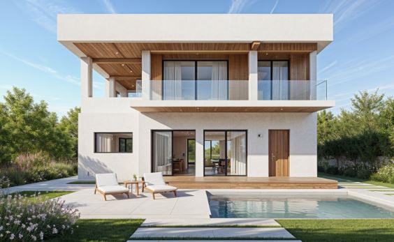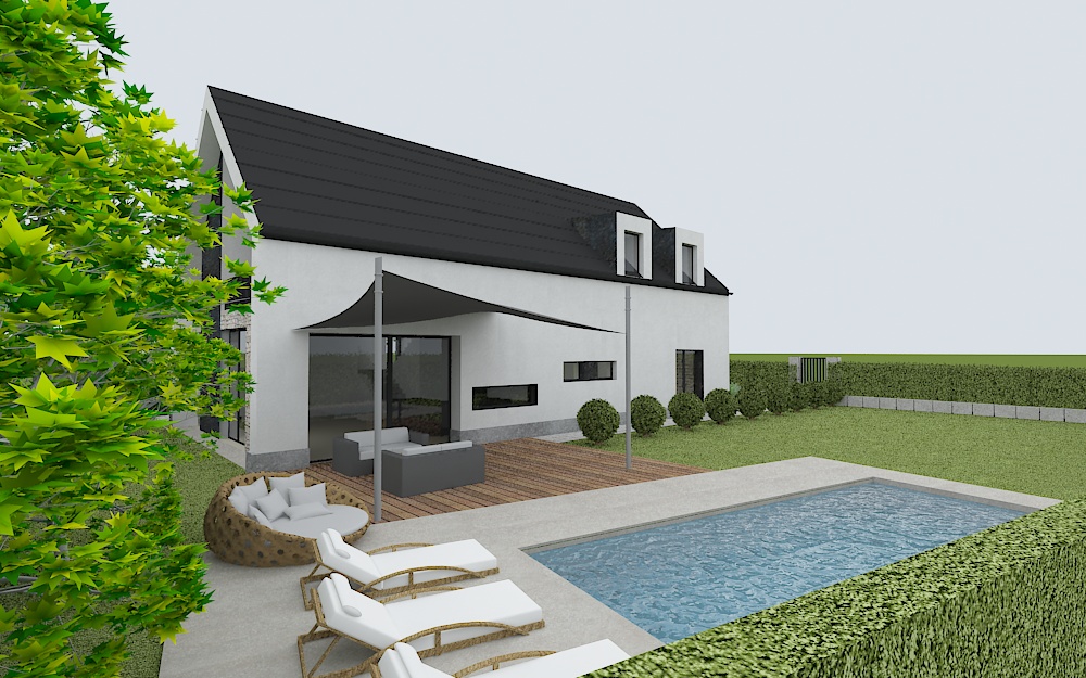 exterior shot add some decoreations on the garden add some background sunlight