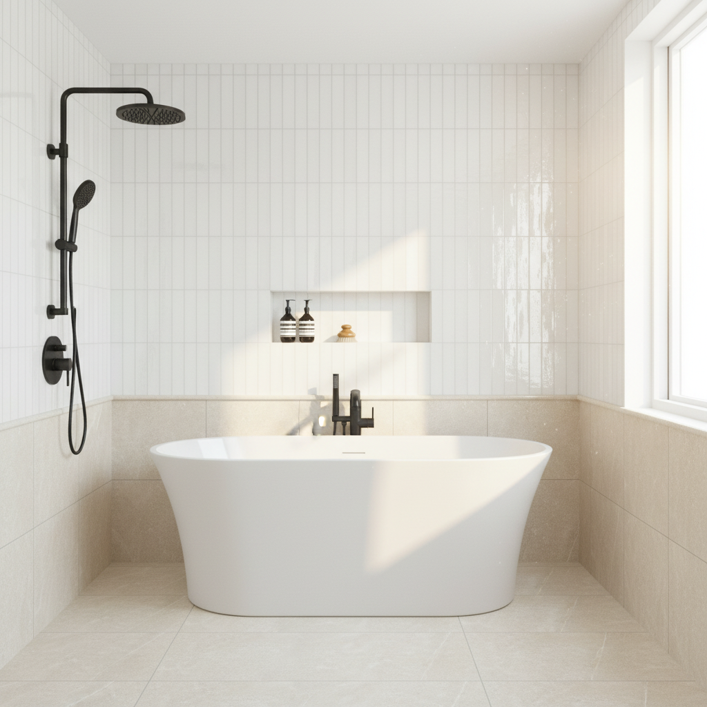 elongate room to the left by 48 keeping tub to right side and shower on left keep finishes as they are