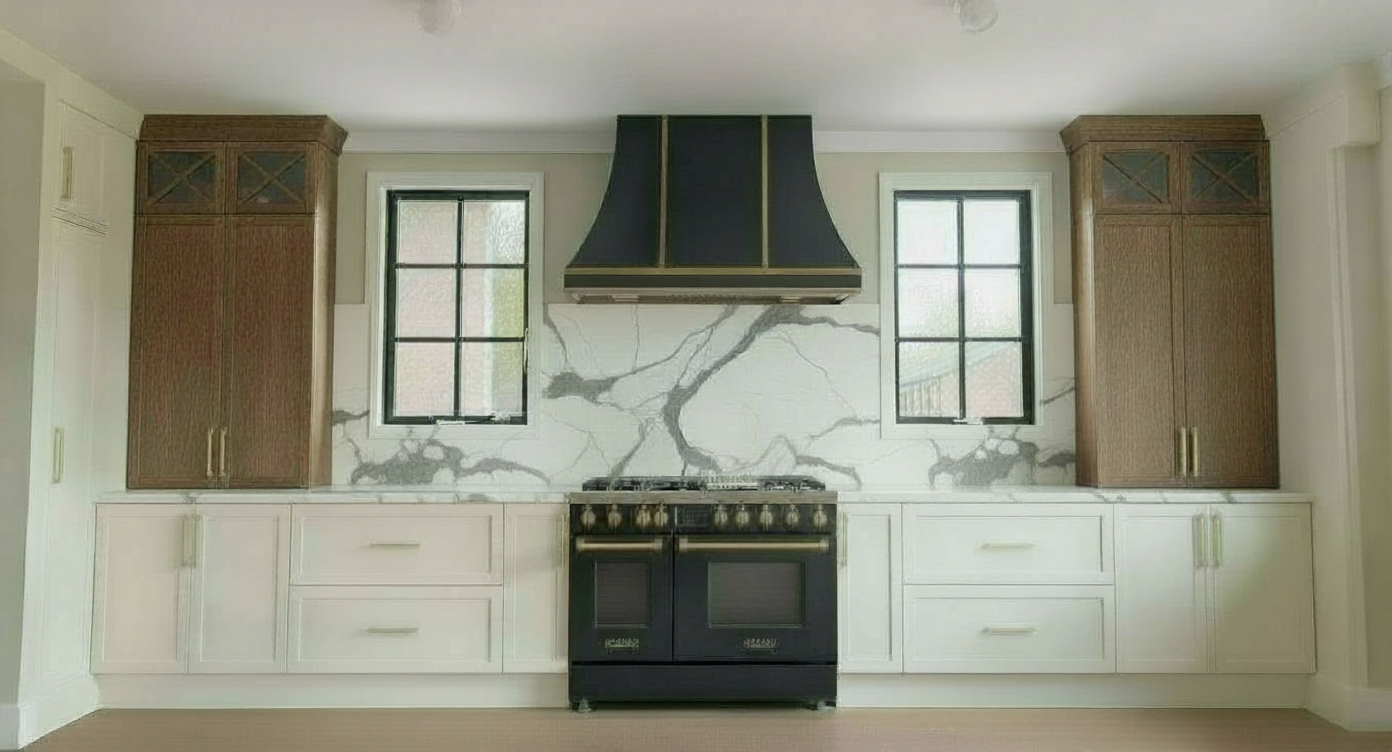 make top of the marble backsplash even with the bottom horizontal grid of the window