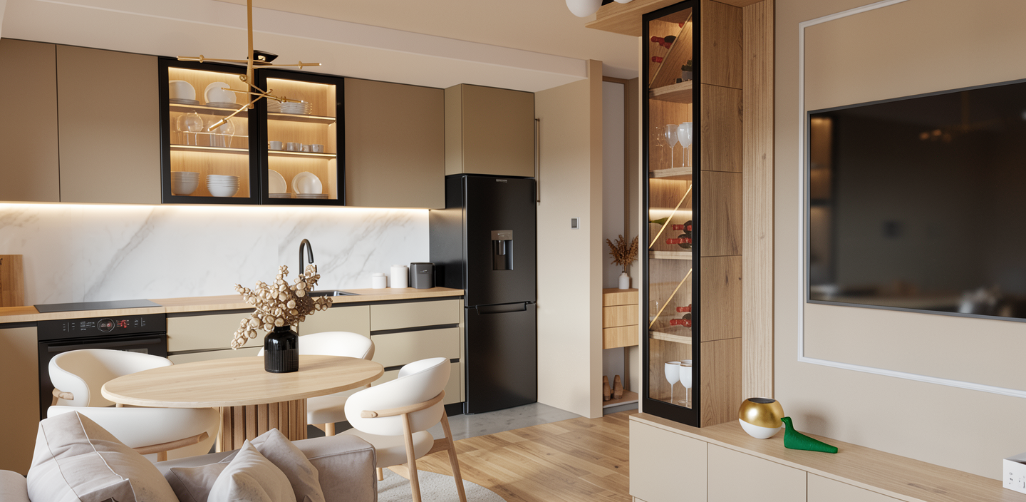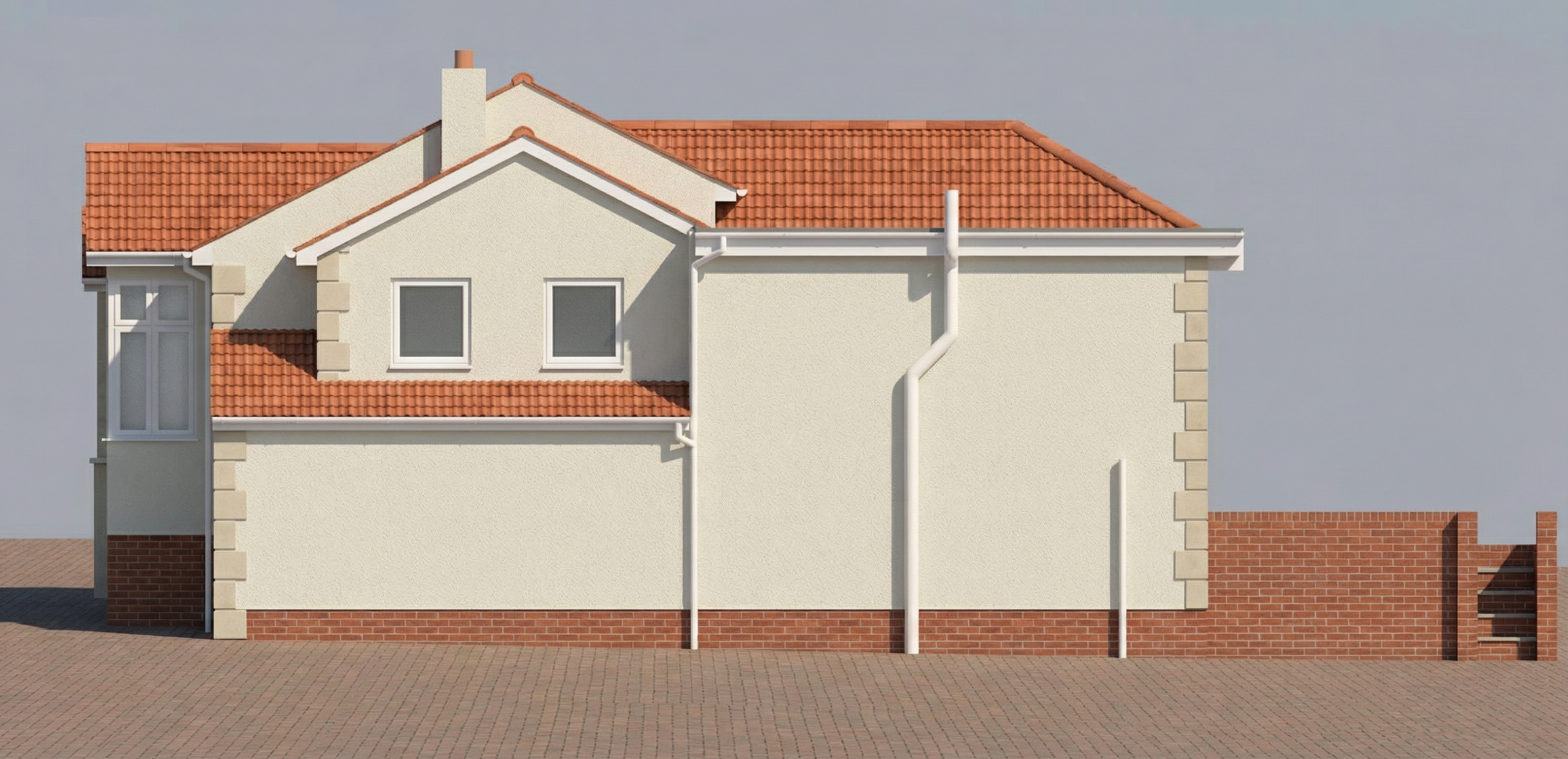 please the arrangement of materials the same but make them as realistic as possible add more landscaping and patio furniture and a mum dad and kid with a small dog