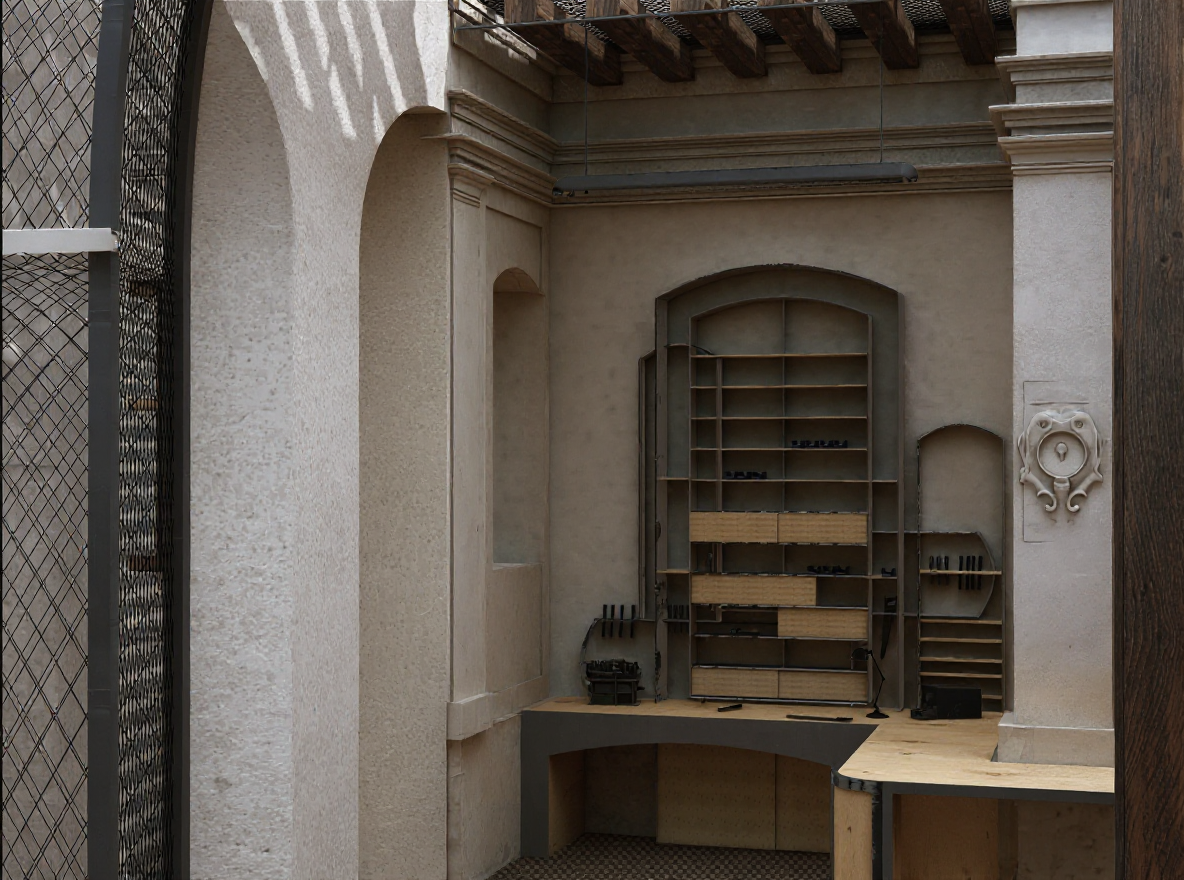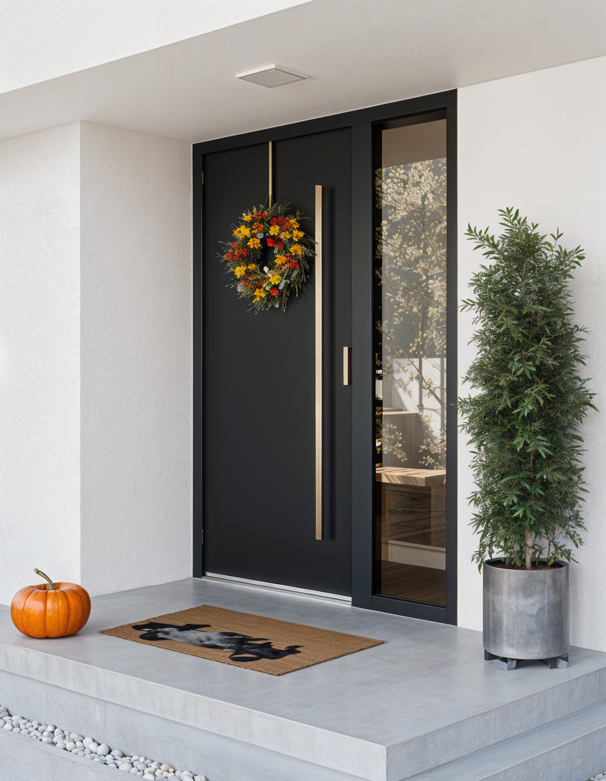 create a serene bathroom with soft nuetral floor and wall tiles the shower has rich eculptus green rectangular features tiles to the walls place blackened oak vanity with curved corners and a large cylinder shaped feature handle split in half between the two doors with a thin clean white counter and undermounted sink place a slim mirrored cupboard above with ambient lighting and vertical towel rails to the right of the vanity
