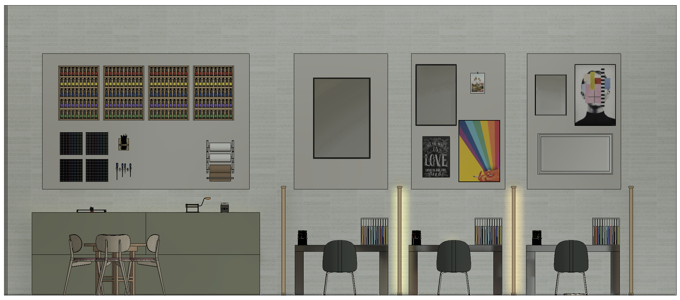 remove the lights on the dividers and do something pretty on the wall for this art room