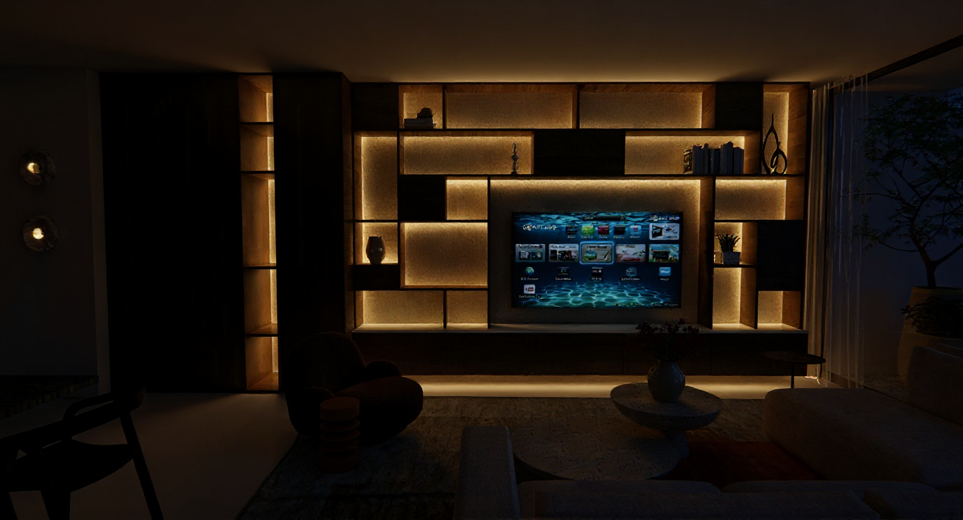 make the image a night shot add lighting strip under each shelf of the library add a few spot lights on the ceiling