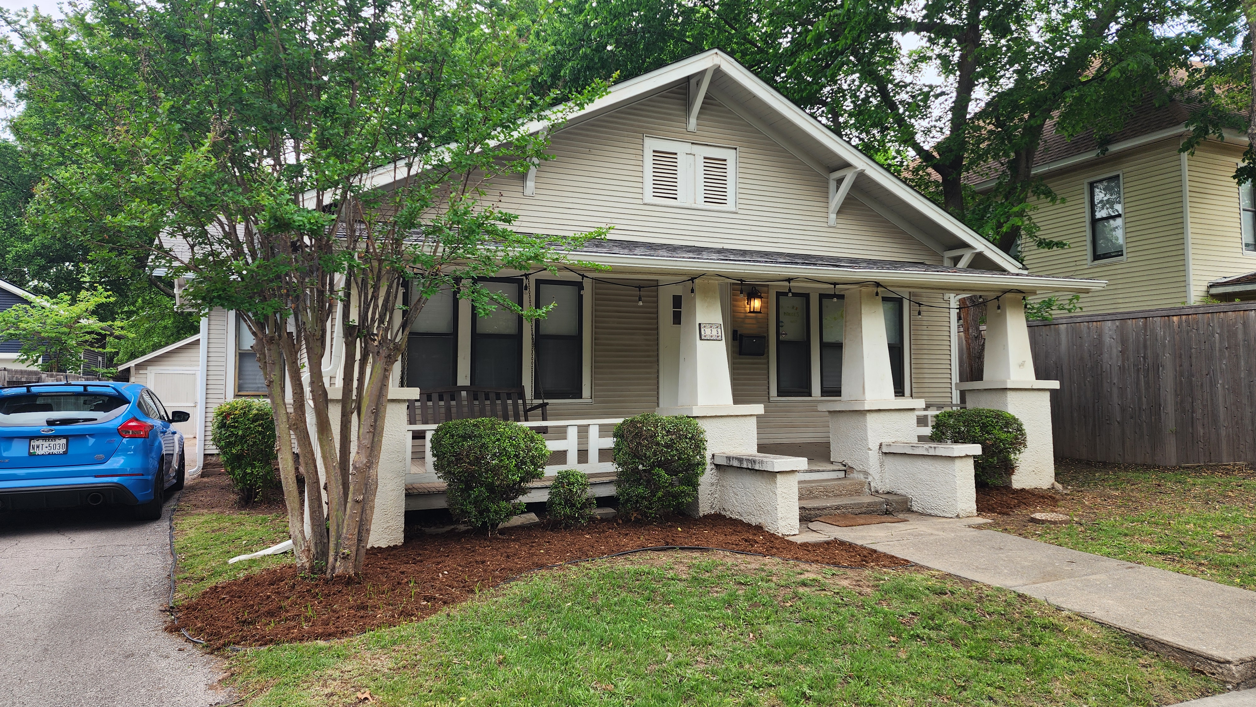 new craftsman style architecture with new gable roof covering the porch new landscaping new windows new lap siding new paint