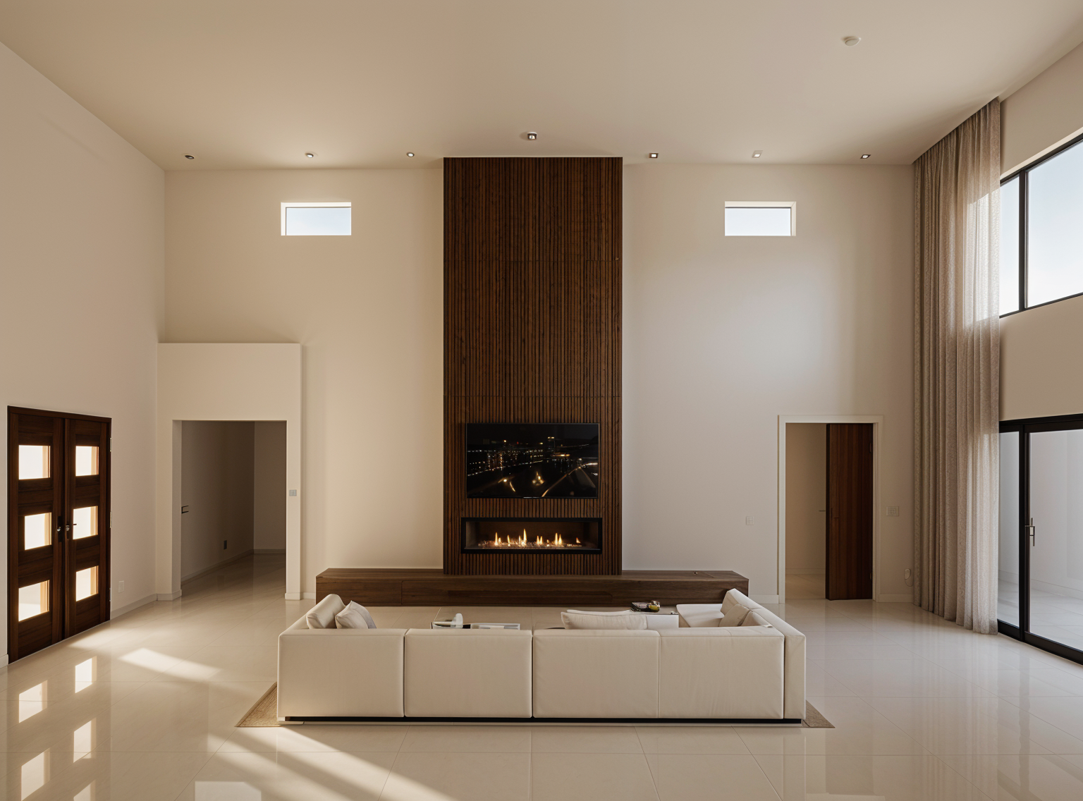 hyperrealistic image scandinavian minimalist style wall and ceiling from white beige limewash floor from neutral oak chevron