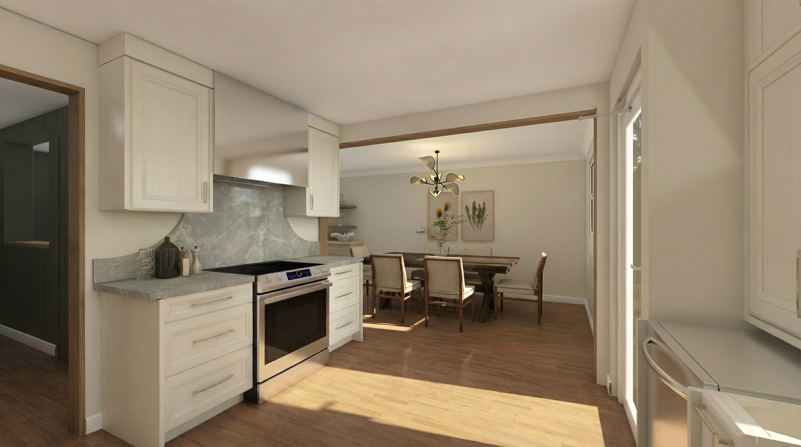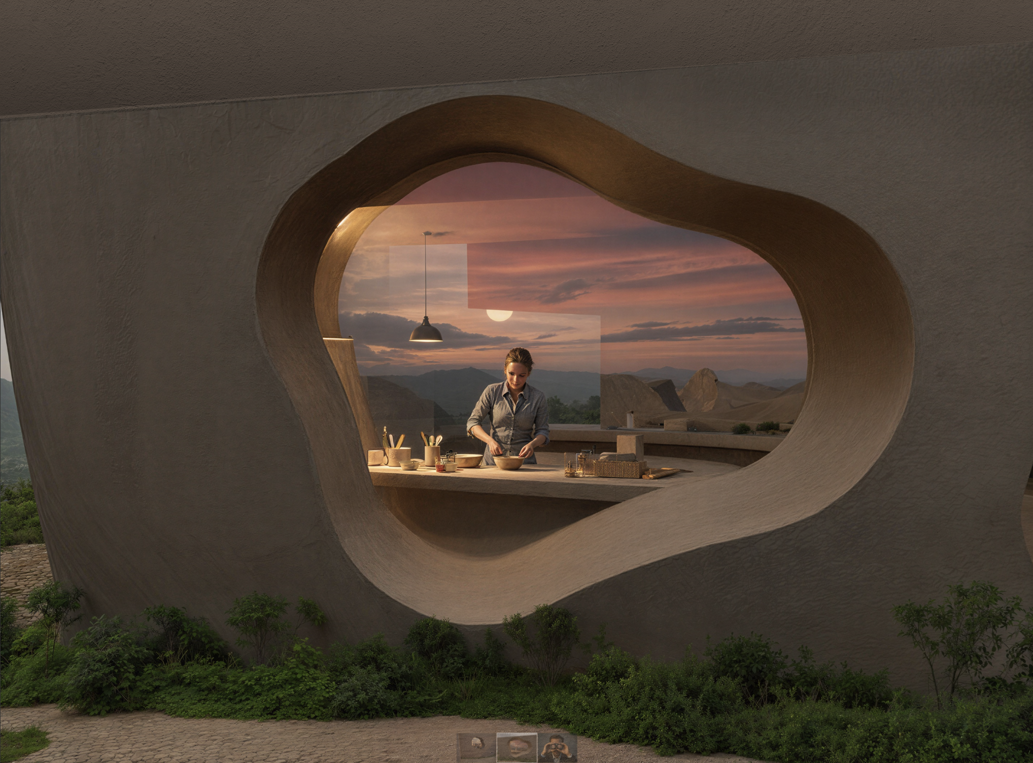 add a stove to the middle of the islandma and add a more realsitic refleciton in the glass