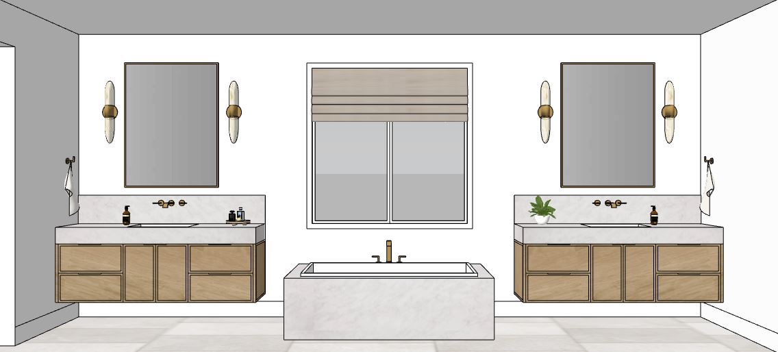 can you turn the sconces on make the vanities a light oak color and make the walls white