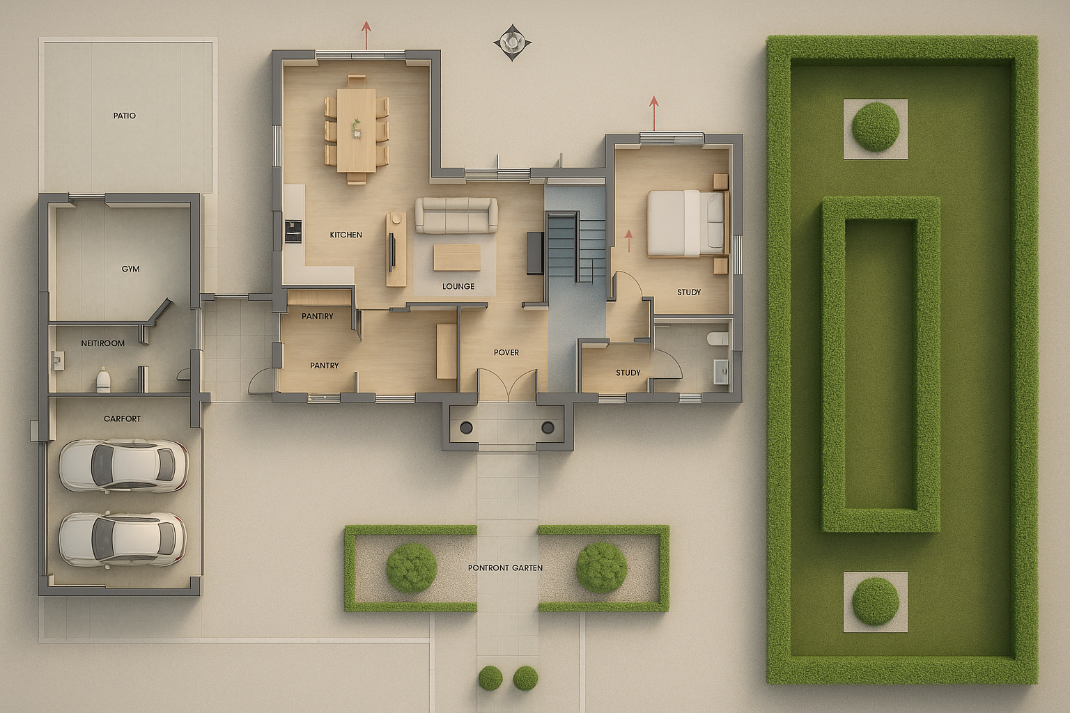 contemporary aerial shot edificio de acero corten con un camino que va descendiendo a medida que avanza y que accede en el centro del edificio a ambos lados hay dos estanques con agua y alrededor c sped y rboles frondosos architecture