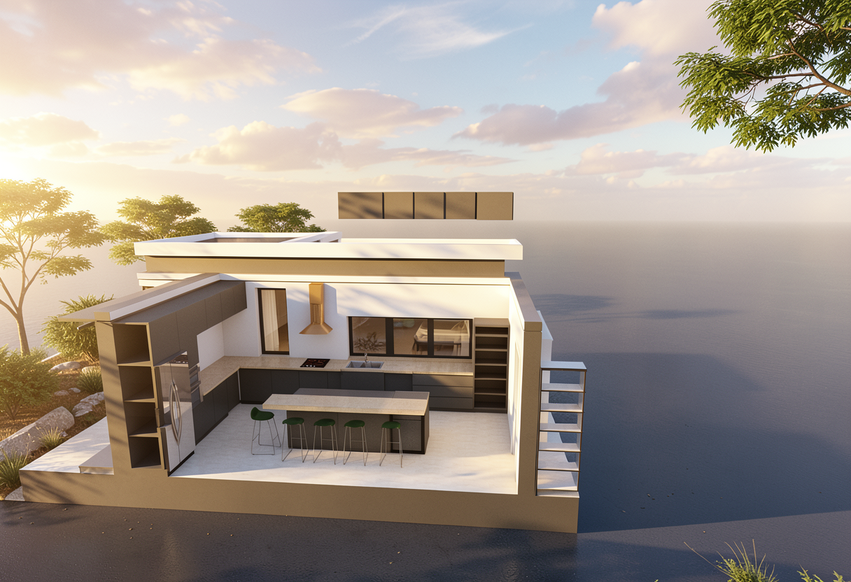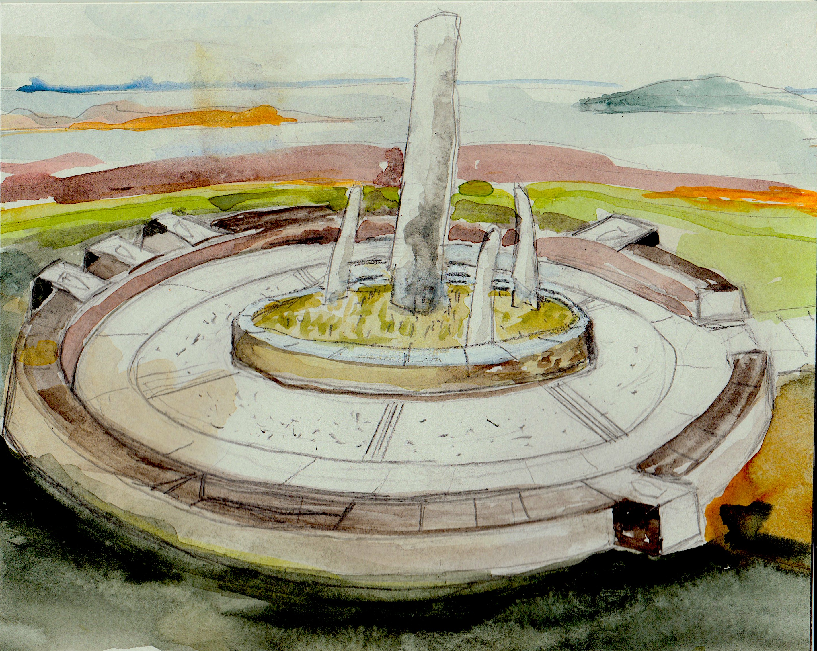 sketchy architecture plan with colour and landscape