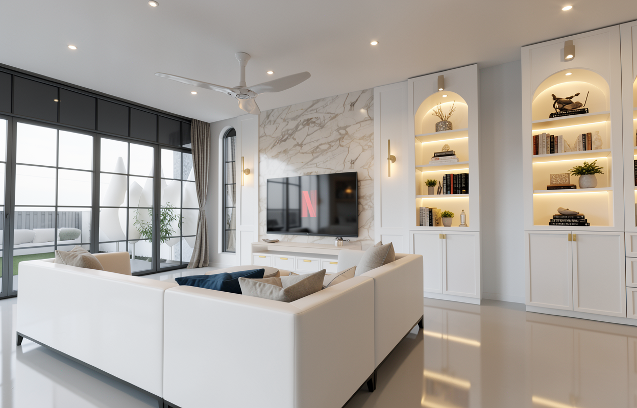pavilion made of timber edges and linen fabric put it inside a park in a outdoor peaceful simple minimalist and elegant settings make the pavilion big and add a few simple minimalist people standing underneath