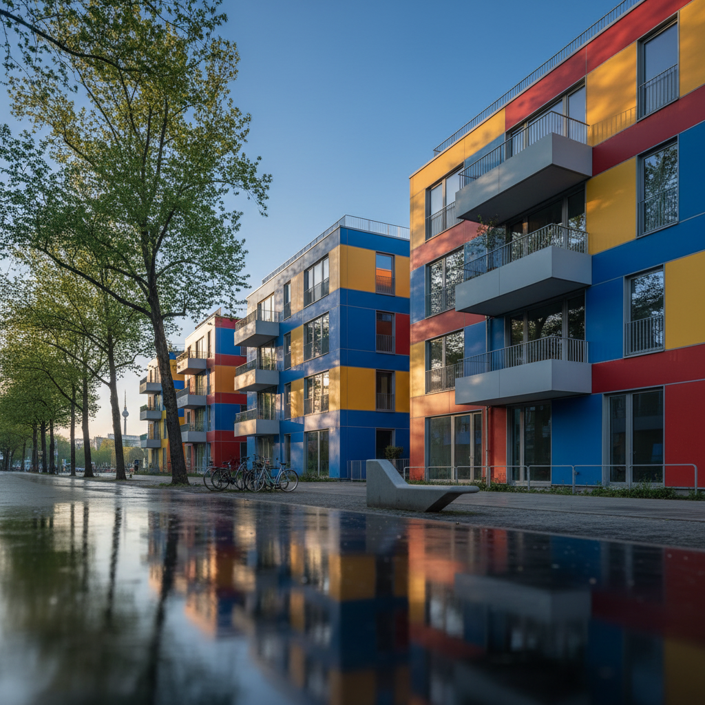 architectural interior scene fully preserving realistic materials and textures wood concrete glass metal and textiles table with a glass top in the center of the room empty soft natural light from windows combined with warm artificial light highlighting details realistic perspective accurate shadows and reflections furniture and objects in original proportions photorealistic style ultra high resolution subtle depth of field background shows a historic modernist city from above focusing on rooftops floors and building heights without showing the street level colors and materials true to reality no artistic stylization
