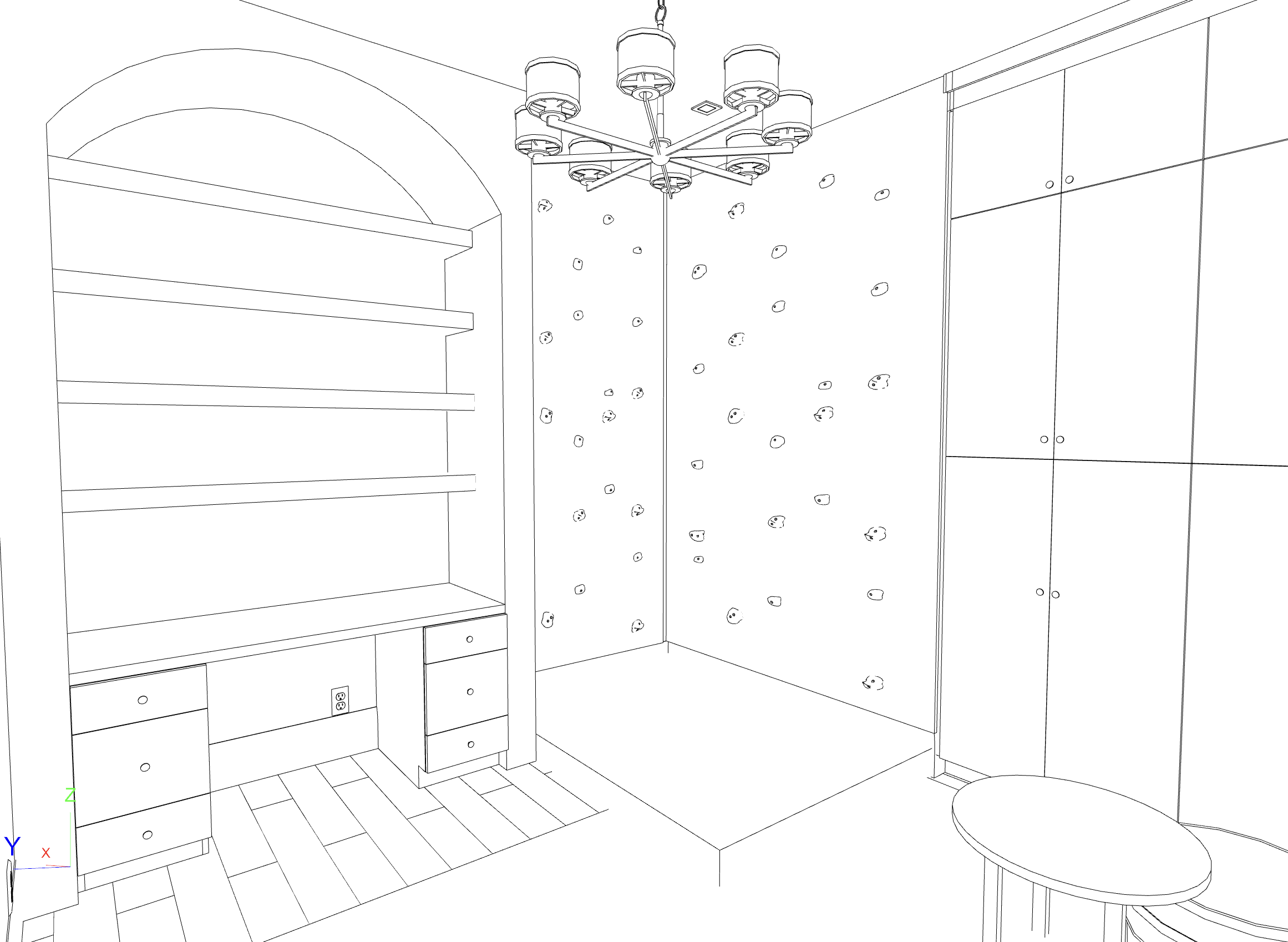 flooring will be avalon wood flooring vogue 9 1 4 hickory red oak hardwood cabinetry and built ins and shelving will be sherwin williams in lotus petal and will be slab style doors and drawers walls in the back corner will be climbing wall in shades of pink and tan which will be a peg board climbing wall in the corner on the floor will be a ball pit in shades of white and pink area rug on floor will be a plush which shag rug small table on right in front of cabinets will be white oak little seat at table will be a small pink ottoman keep everything else as is