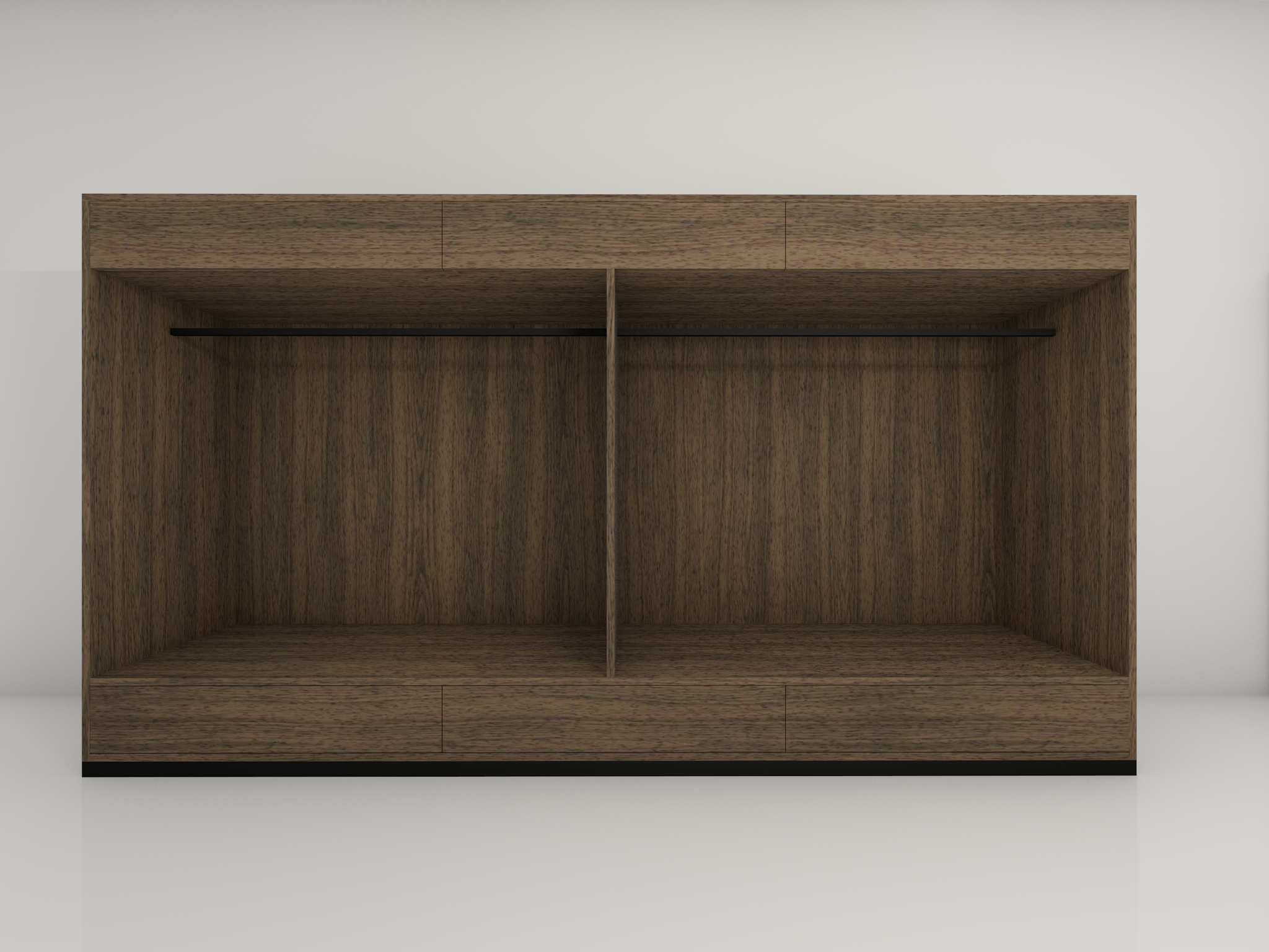 modern minimalist soft white no wood realistic add led lights horisontaly above the hangers add neutral tones clothes on hangers