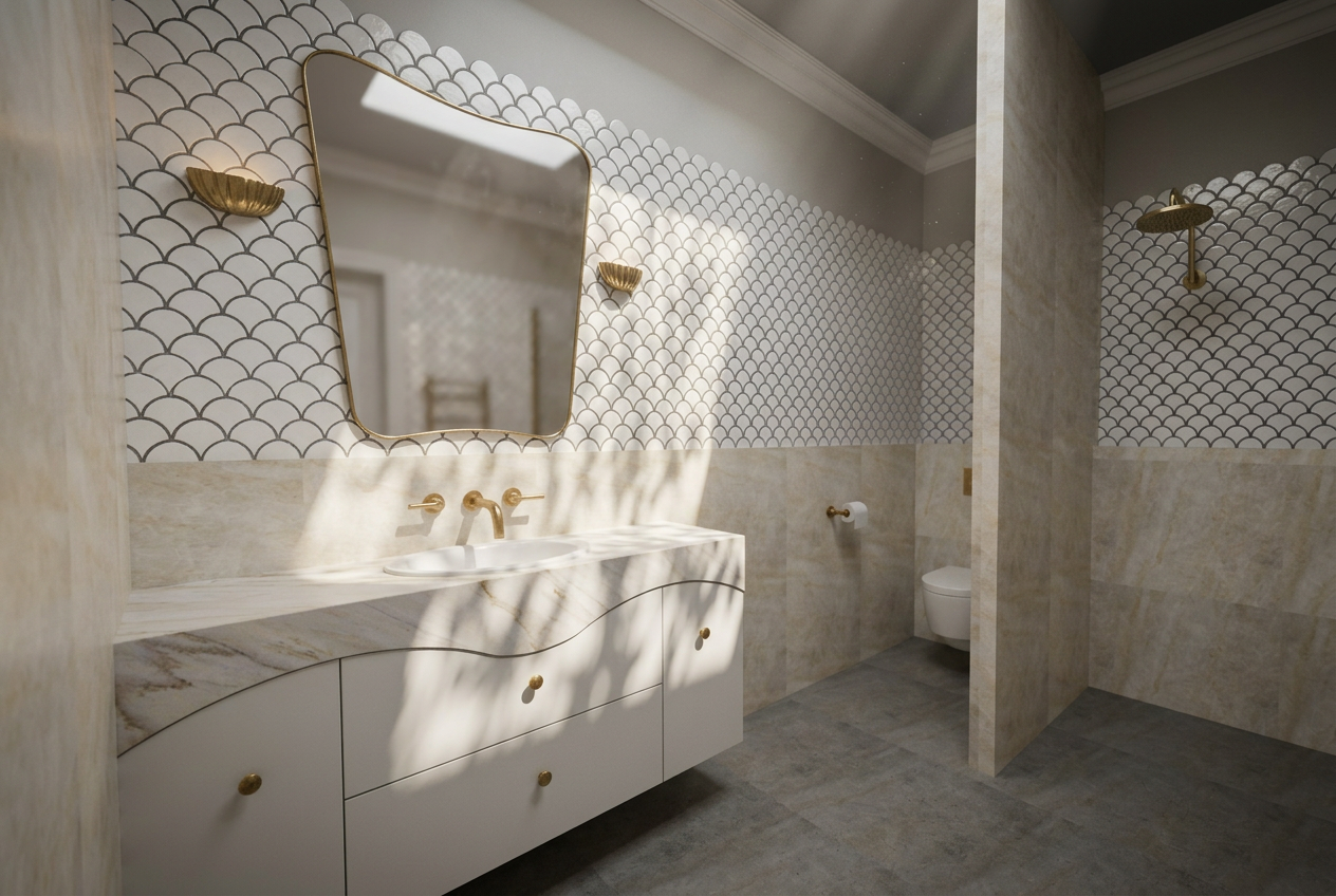 remove frame from mirror and make it an led mirror remove window from shower and make it a niche keep everything else the same