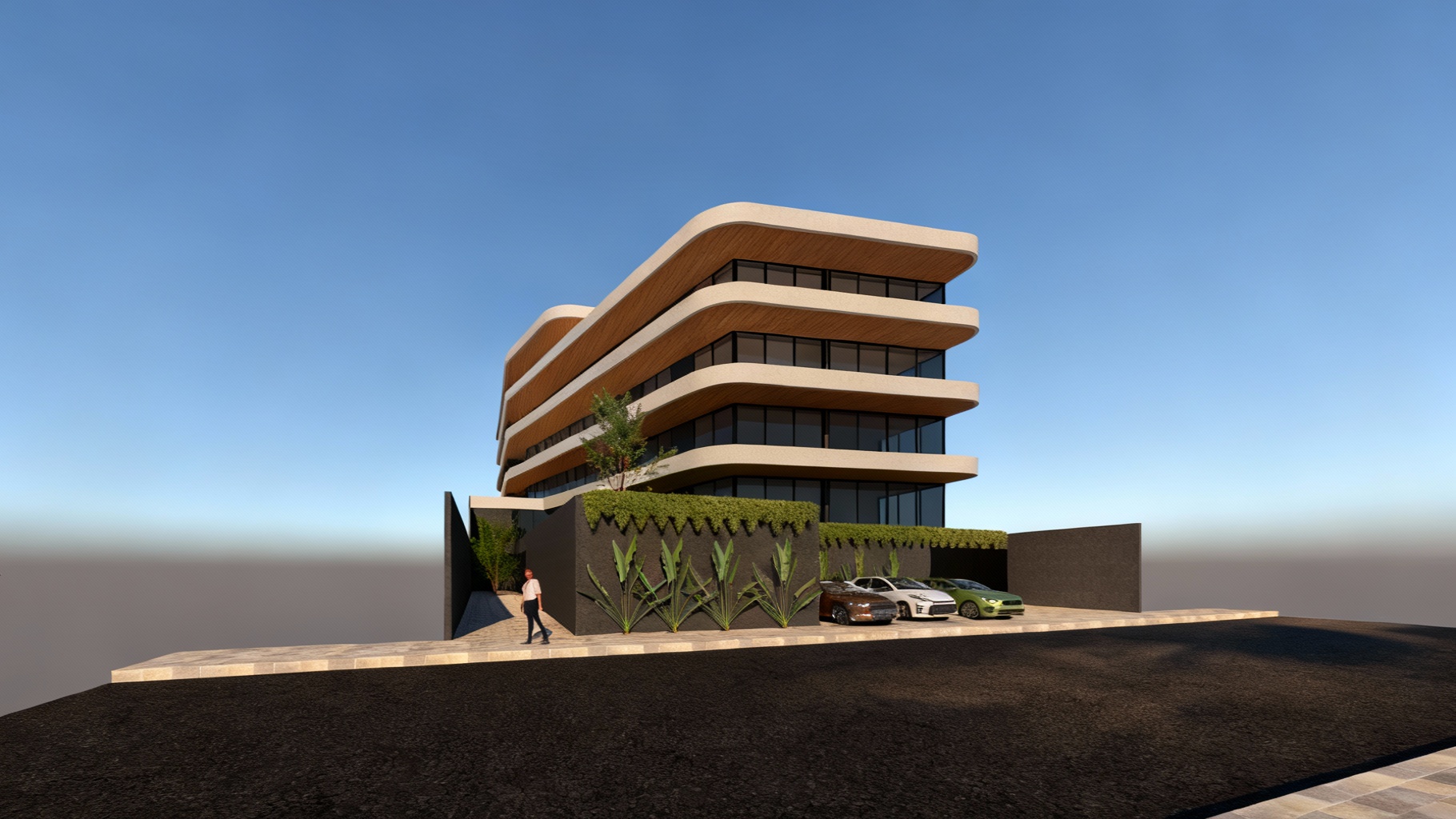 warm modern kitchen with concrete floor slab