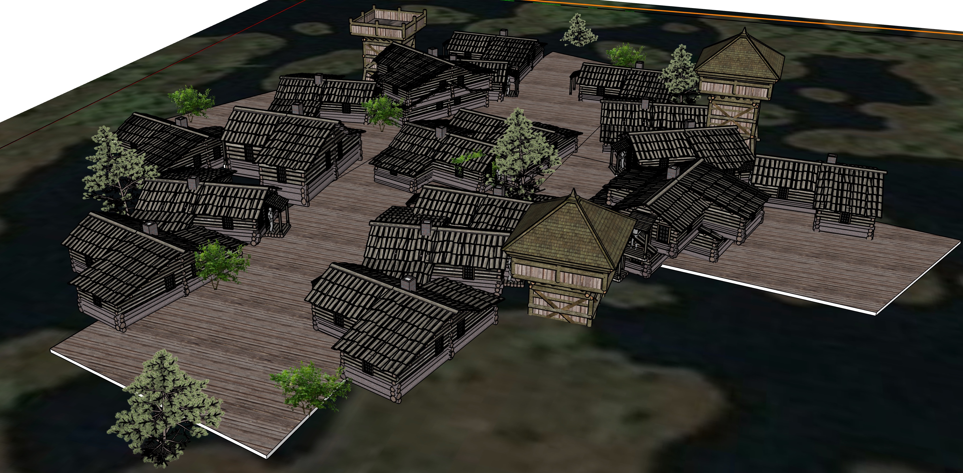 floating village in the bog with small lakes and moss around buildings and roads are heavily overgrown more icelandic norway look