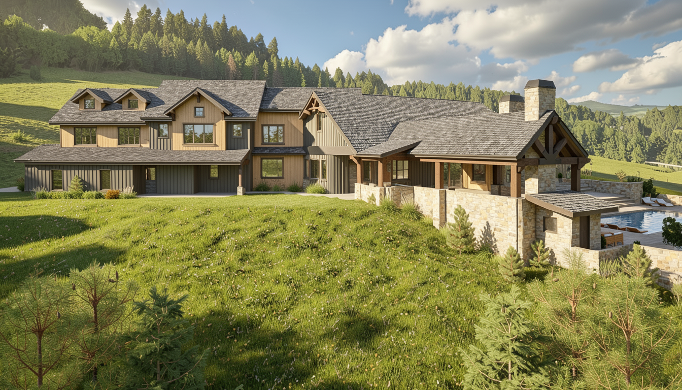 make more photoreal no high gloss mid day add clouds and reflection of tree hill in windows