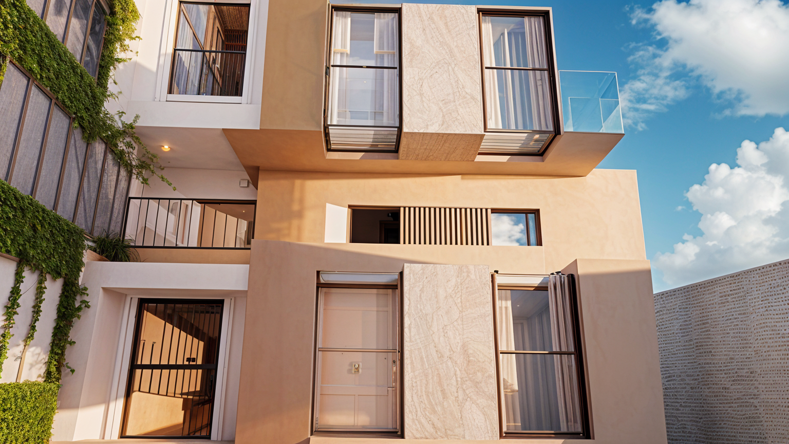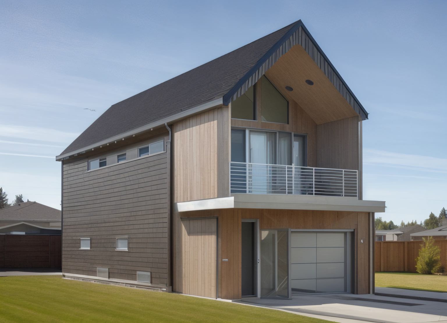 modernist exterior shot lighten up vertical brown metal siding add landscape and exterior lighting keep everything else the same architecture