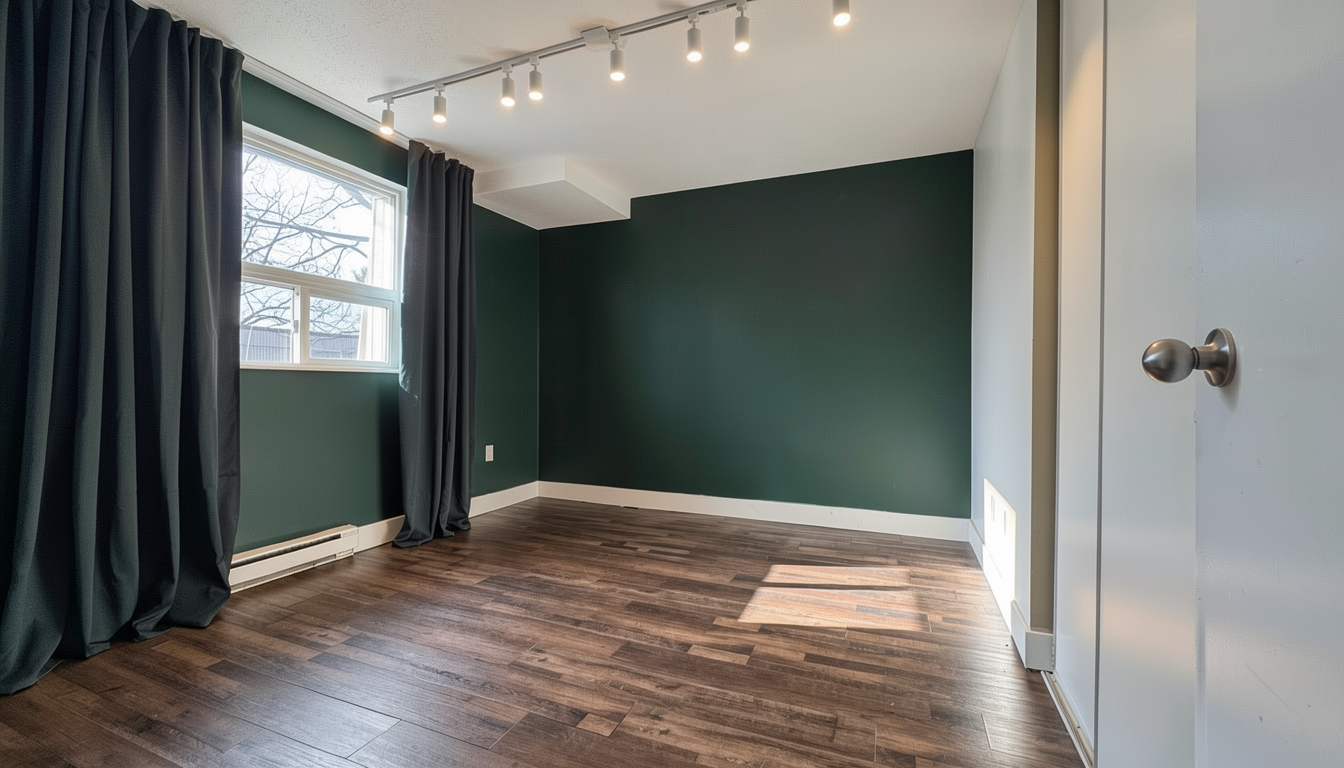 primary bedroom with modern furniture nothing on the right wall add accent lighting add plants not foot rest chair larger art work