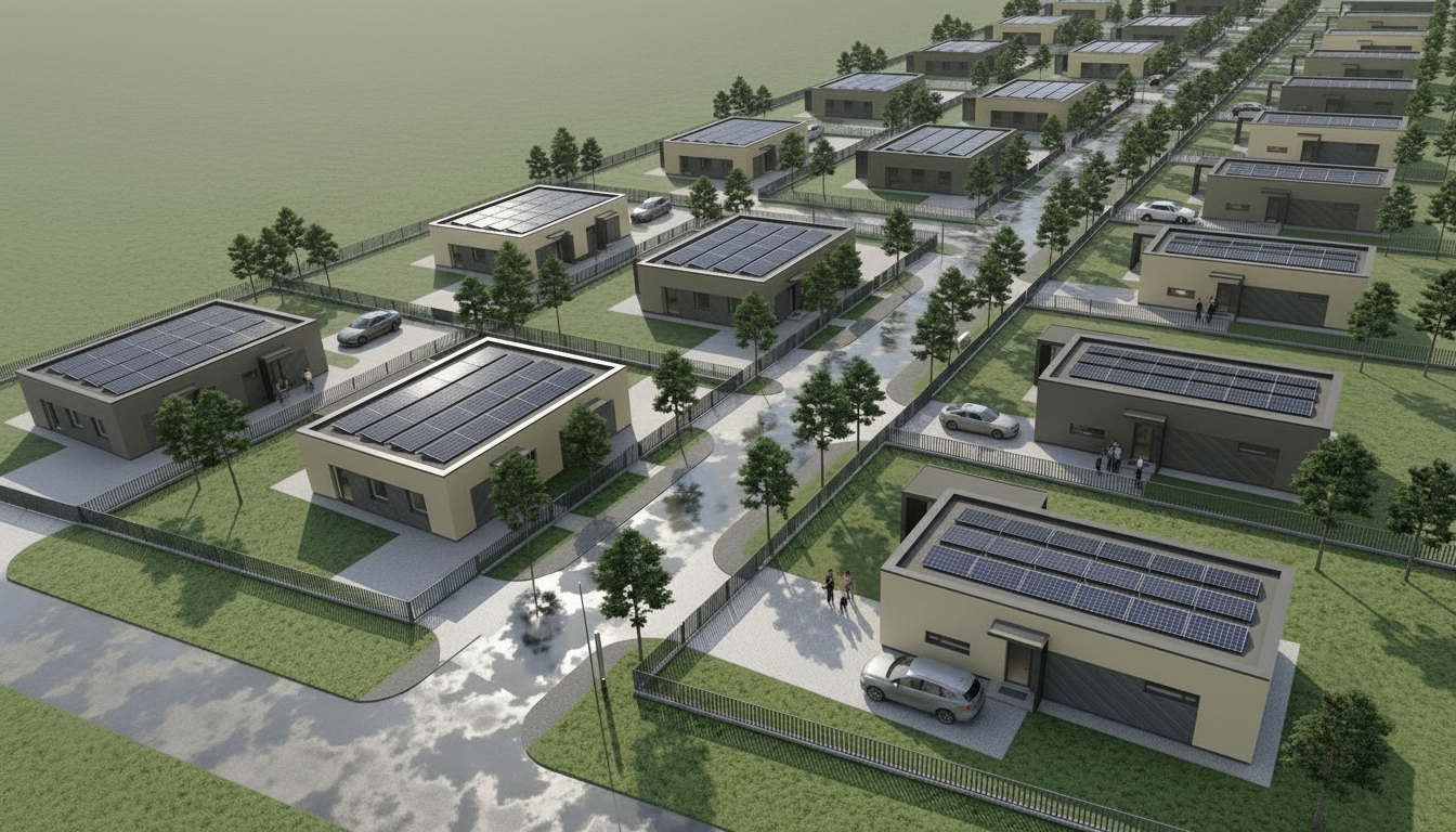 don t change details but make this setting more realistic with bright midday lighting more realistic grass add walking people on sidewalks