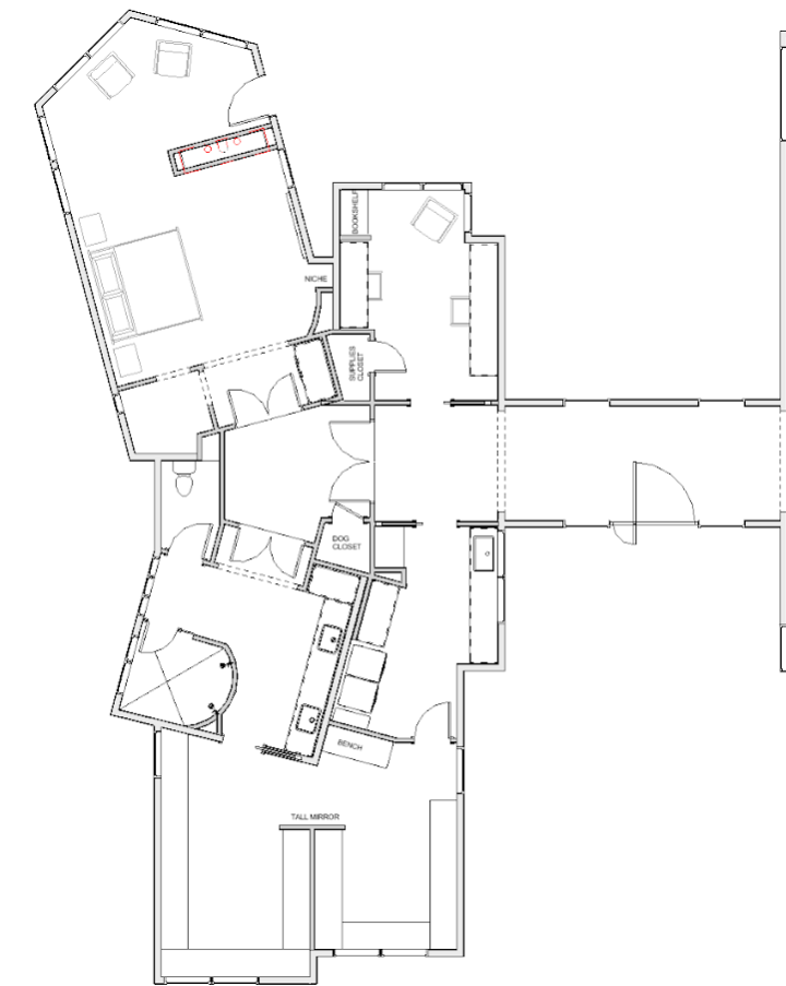 convert this floor plan into a realistic isometric 3d view of a bedroom show the space from an elevated angle with furniture walls and details visible use the same furniture as shows on the plan do not change the orientation of the floorplan