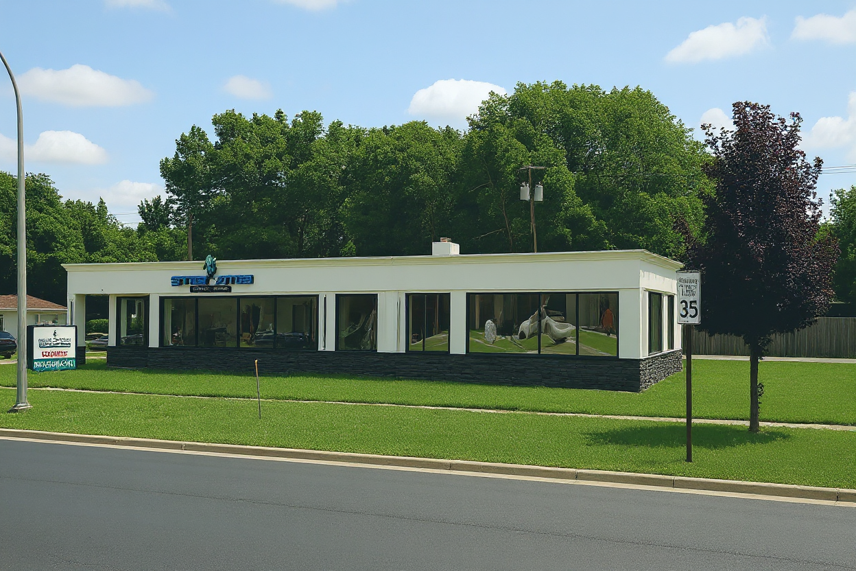 add short grass to the lawn remove the signs in front of the house and fix the imperfections in the photo