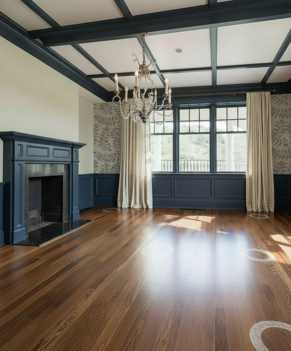 nordic exterior shot can you make this photorealistic with a pale warm silver timber cladding sitting over a darker stone ground floor level with a realistic swimming pool in the foreground and a view out over padstow bay in the background keeping the same view and showing neighbouring buildings on the other side of the garden walls architecture