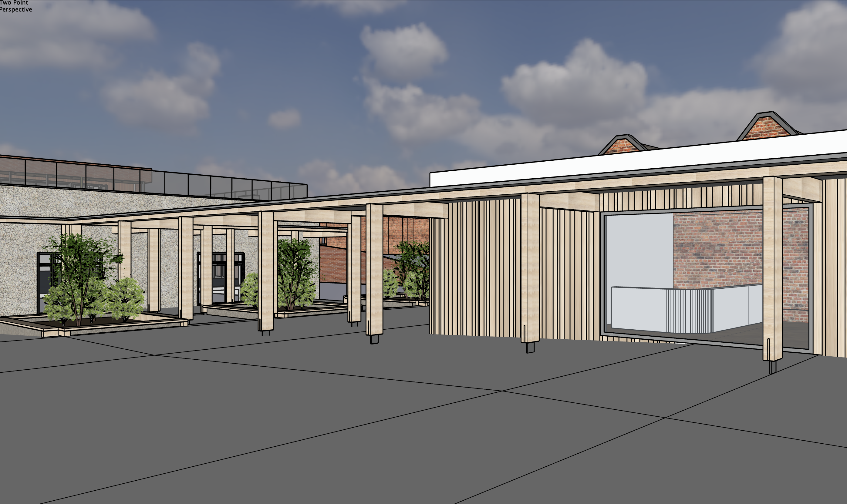 do not change the columns make sure the window opening under the timber canopy is glazed do not change the pavement