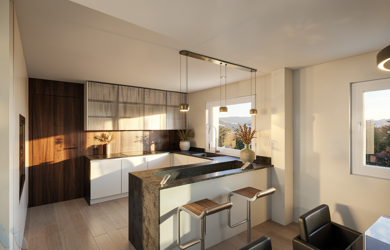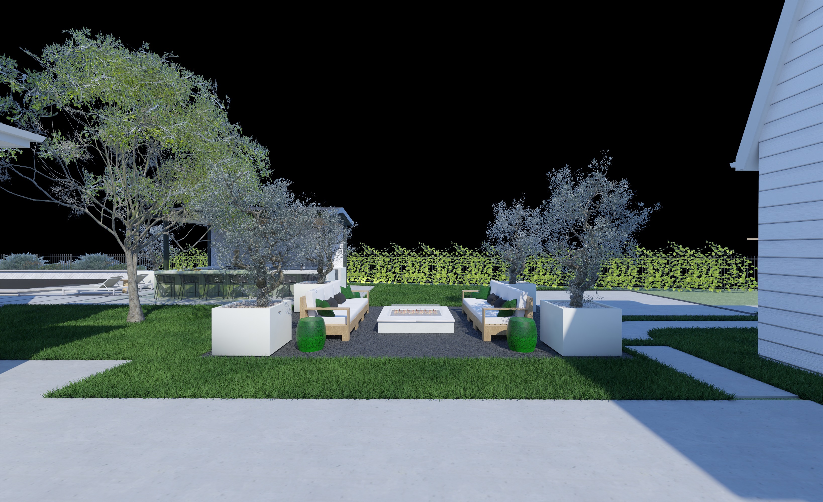 enhance lighting green tiles under the counter in the outdoor kitchen